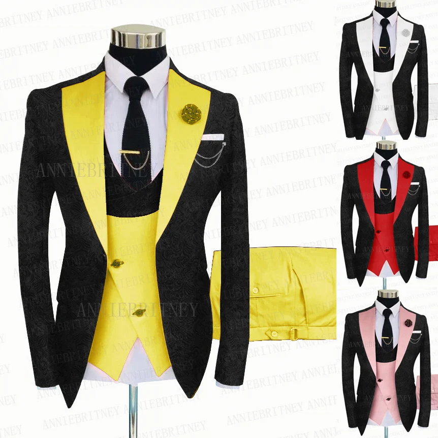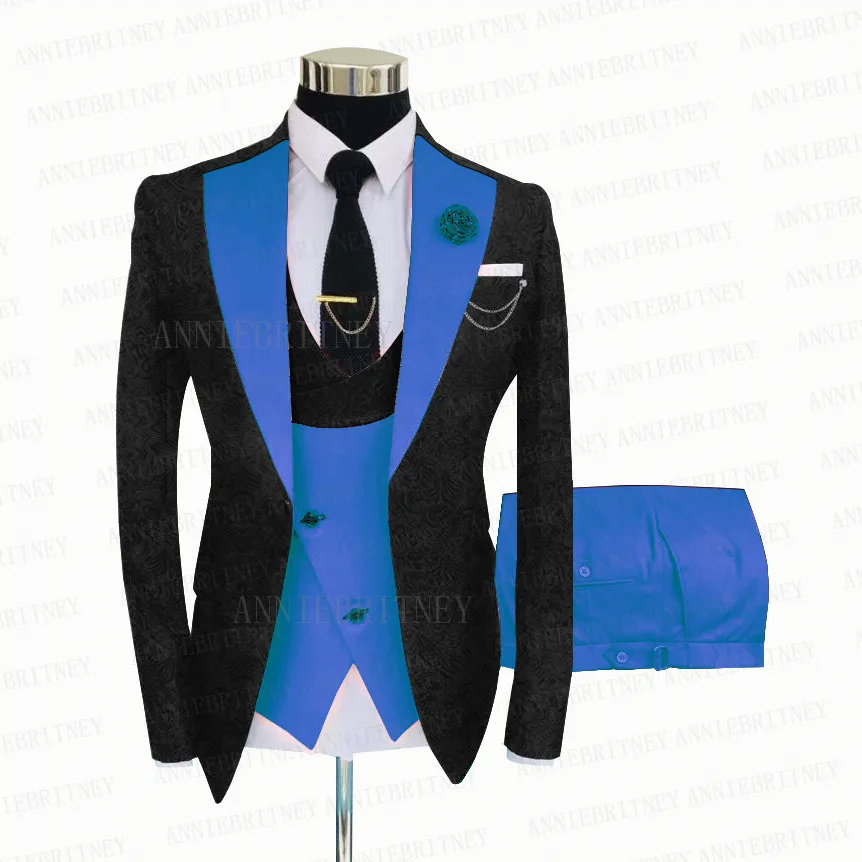 Жаккардовый костюм для мужчин из 3 предметов, приталенный пиджак, д...