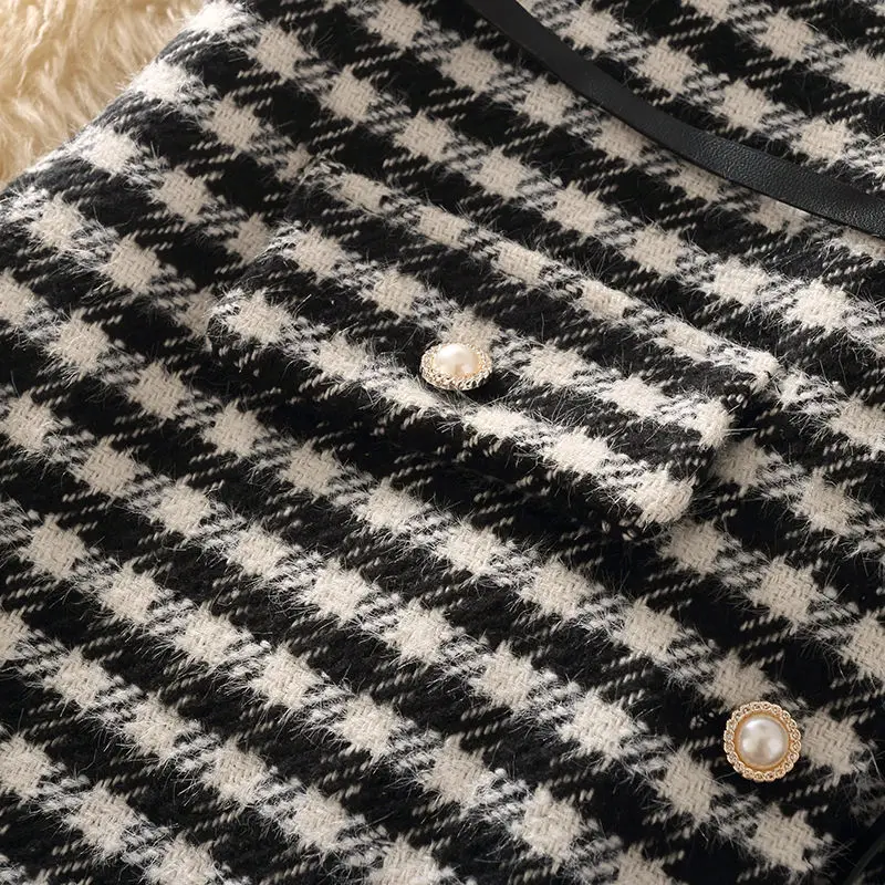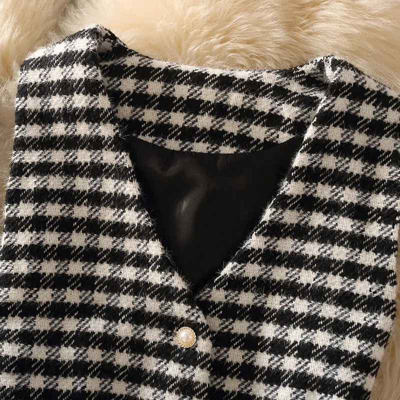 Женский твидовый жилет в клетку, весенне-осенний Длинный жилет без рукавов с рисунком гусиные лапки