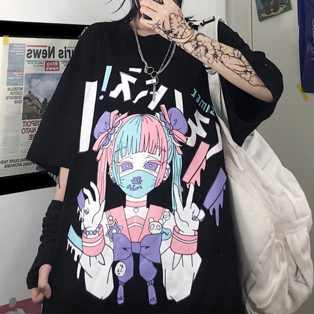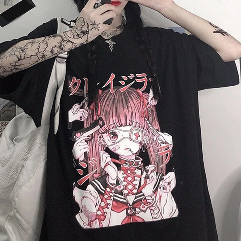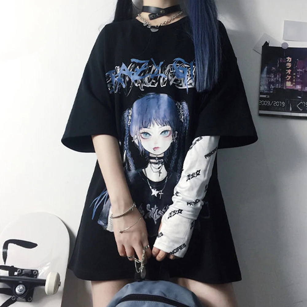 Футболка женская в готическом стиле, пикантная Свободная рубашка в ...