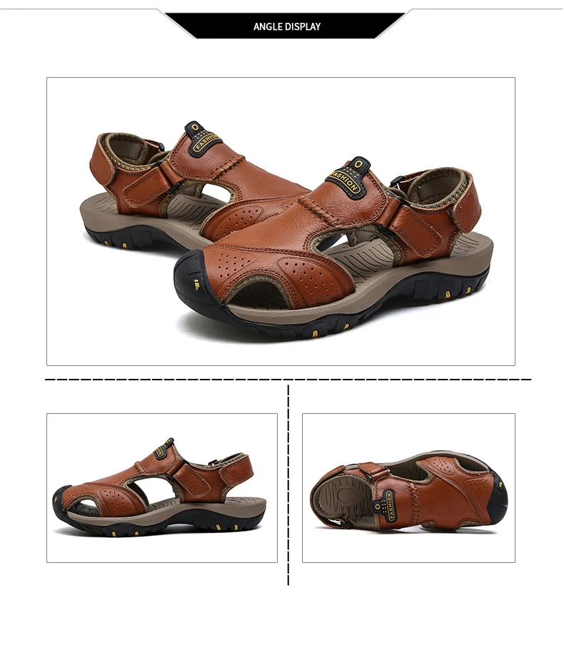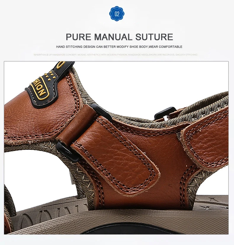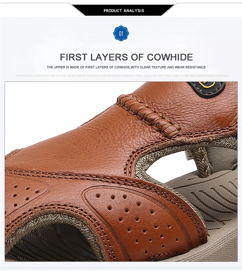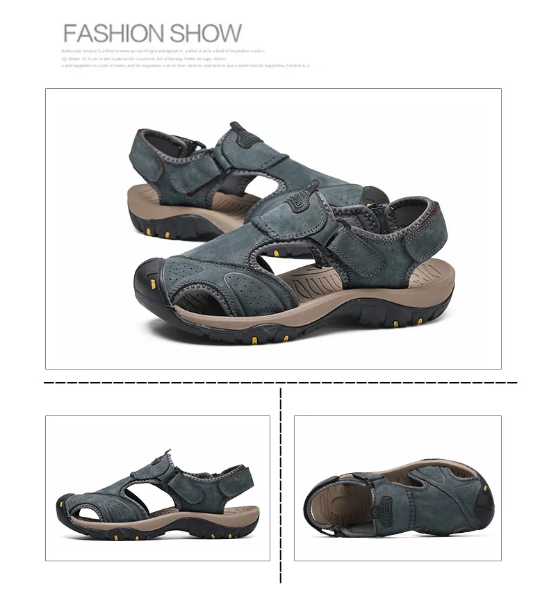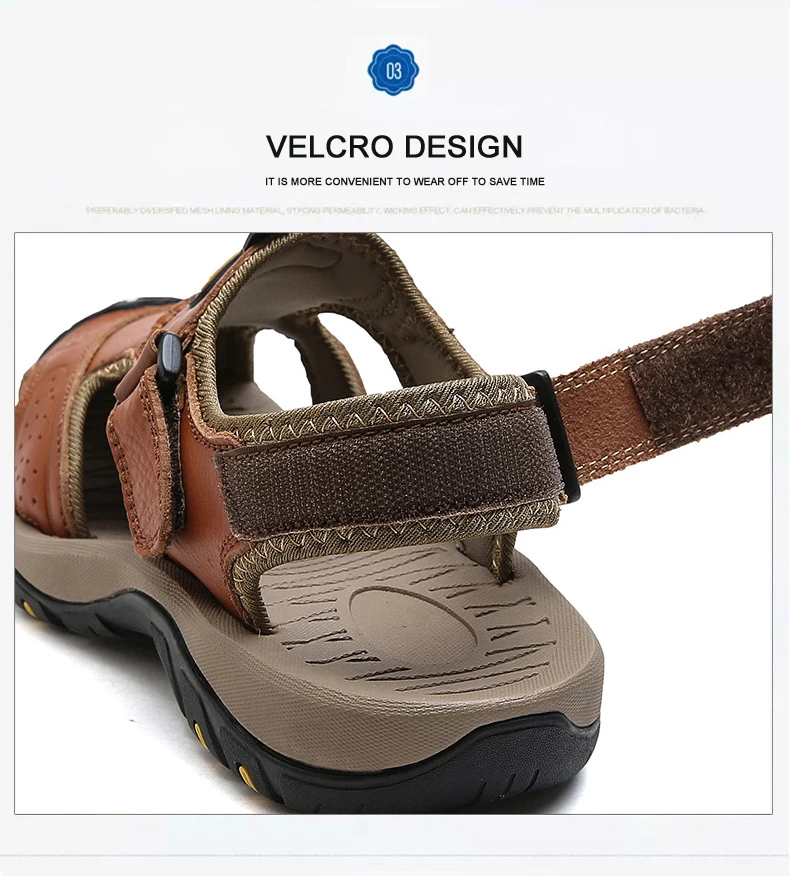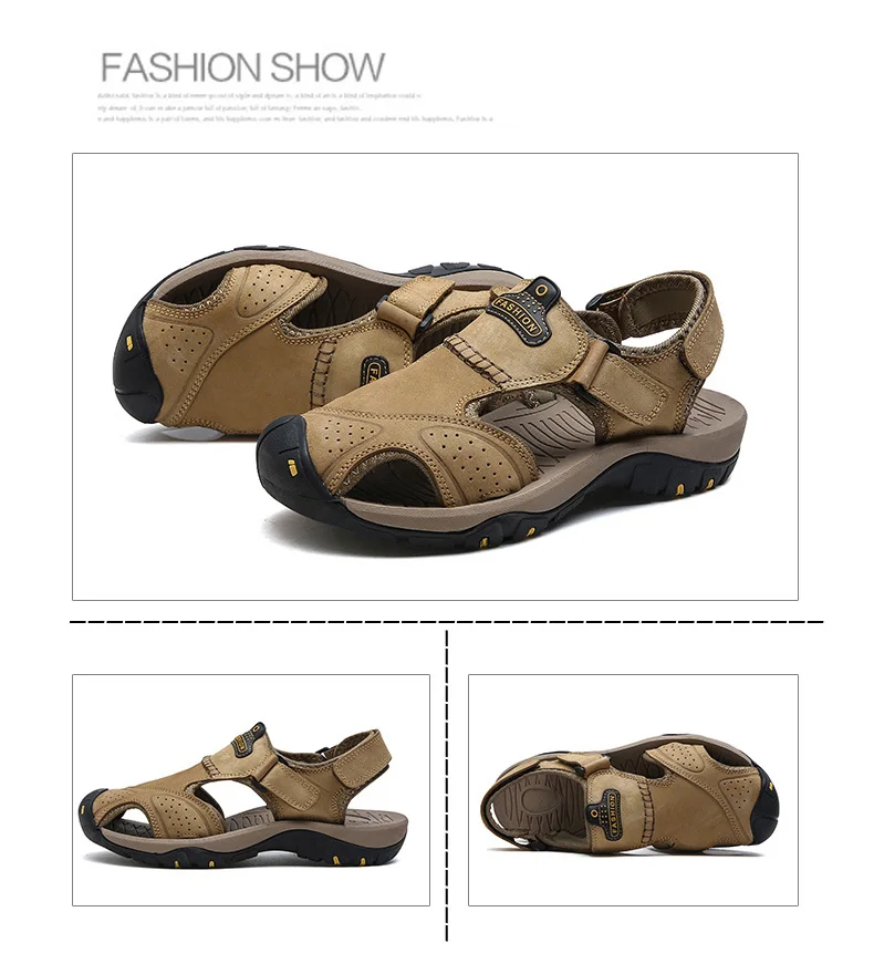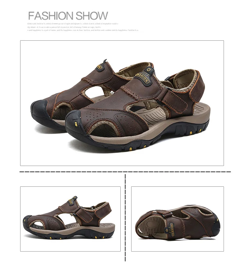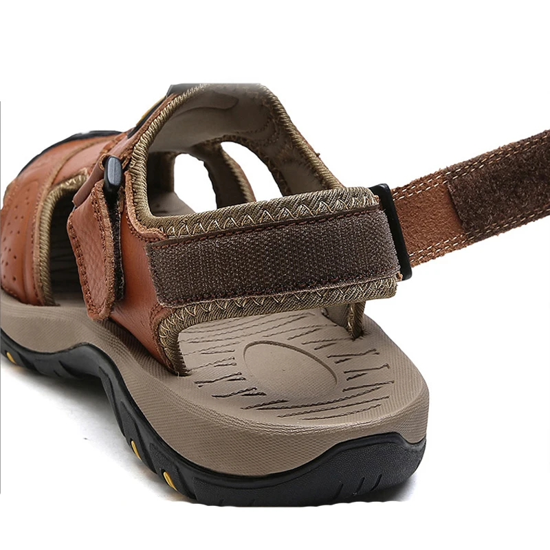 Летние мужские сандалии из натуральной кожи; Дышащие мужские пляжны...