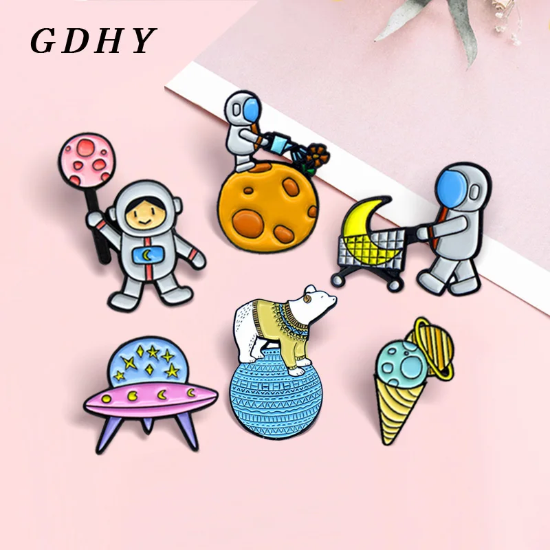 GDHY мультяшный астронавт эмалевые булавки синяя планета полярный медведь Вселенная Космос Серия Космос НЛО забавные ювелирные изделия подарок для детей