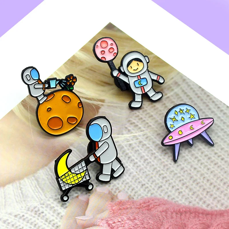 Брошь женская эмалированная, мультяшный астронавт, НЛО, пилот, Всел...