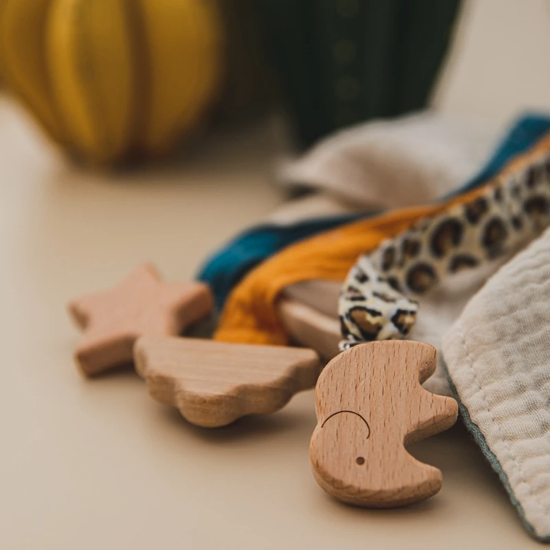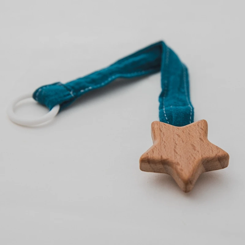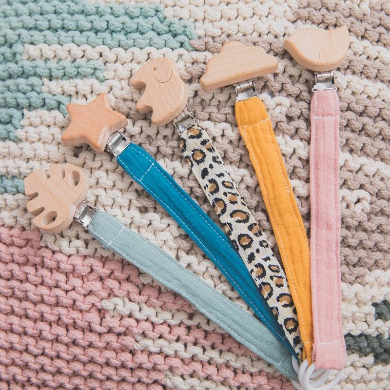 Цепочка для соски-пустышки, в виде слона, звезды, деревянная, ткань...