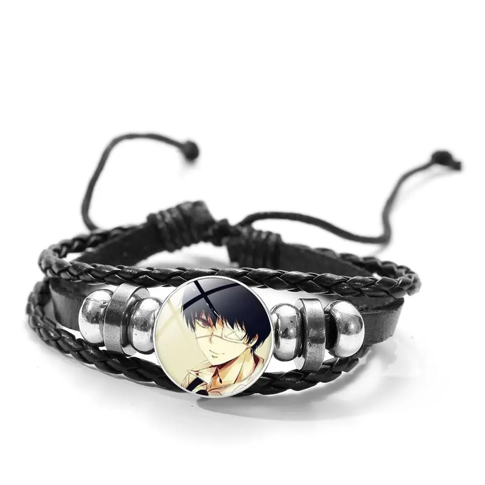 Панк аниме Токийский Гуль кожаный браслет Многослойный черный верев...