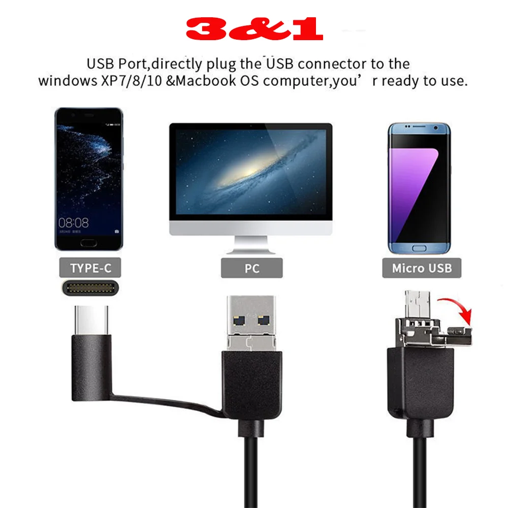Мини HD 3,9 мм мягкий и жесткий эндоскоп камера для компьютера USB Android Тип C эндоскоп камера 5,5, 7 ,8 мм диаметр водонепроницаемый 5 м 10 м