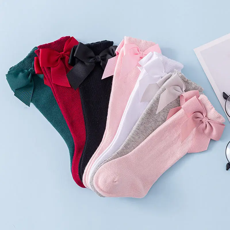 Осенне-зимние детские носки до колена, хлопковые носки в испанском стиле с большим бантом, детские носки для мальчиков и девочек