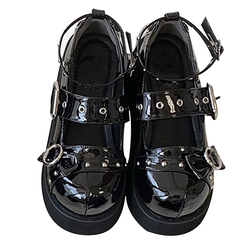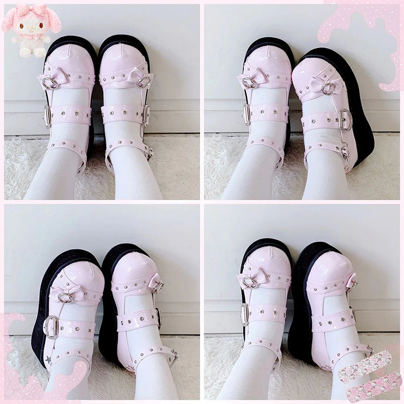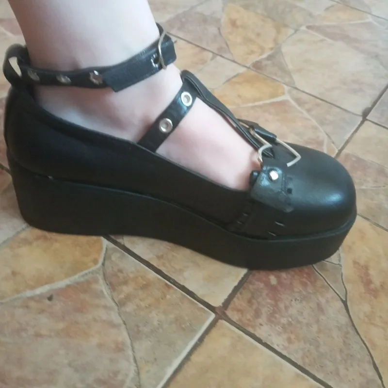 Новинка 2021 года; Обувь для девочек в стиле Лолита; Милые туфли на танкетке и Высоком толстом каблуке; Модная женская обувь на платформе из искусственной кожи в стиле панк