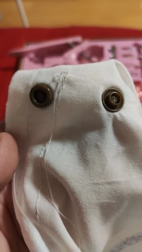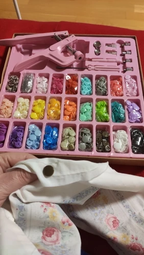 Es súper fácil de usar, y quedan genial los botones. Ayer la estrené poniendo botones a todo lo que se me ocurría, es genial!. No he contado los botones, evidentemente pero bueno, vienen muchos de muchos colores.