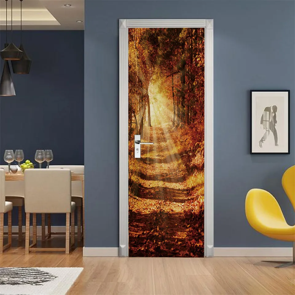 Настенные виниловые 3D-обои с изображением пейзажа на дверь, Стикеры для украшения гостиной, спальни, домашний дизайн, художественный Декор