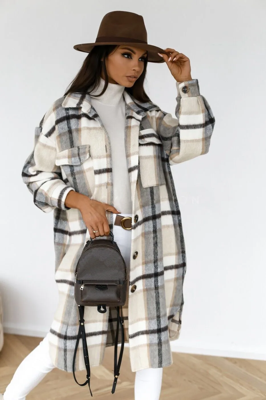 Рубашка женская клетчатая, длинная, осенне-зимняя, с отложным воротником