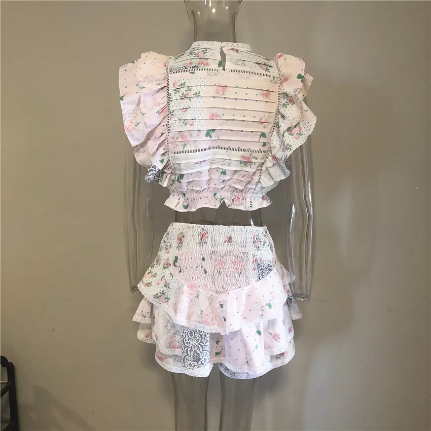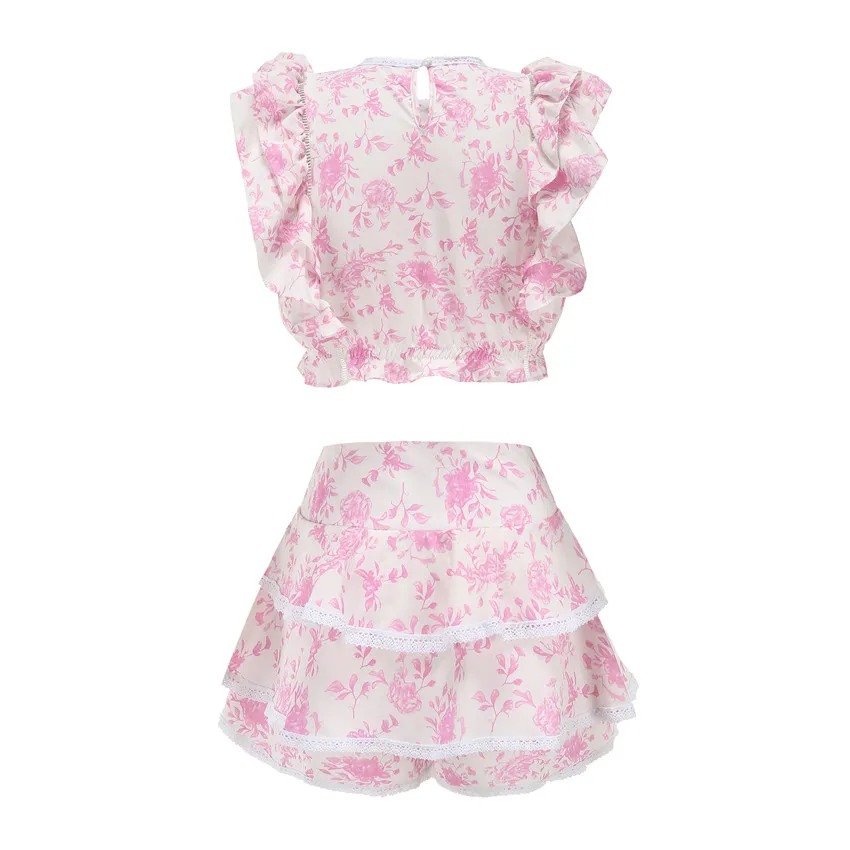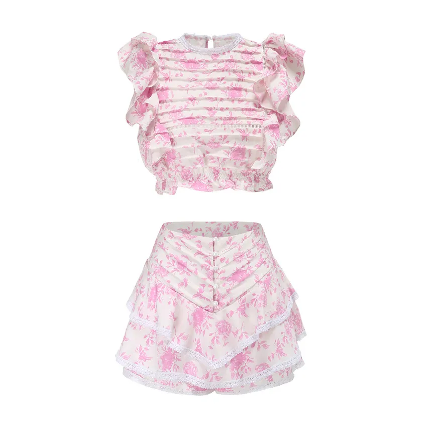 Воскресный комплект высокого качества 2022 года, укороченный топ с эластичным поясом и оборками, милые мини-шорты с оборками и юбка