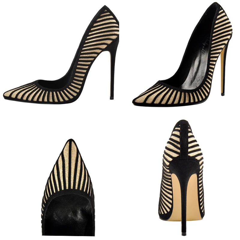 Onlymakerженские туфли-лодочки на высоком каблуке 12 см с острым носком без застежки; Классические навечерние ные туфли в полоску; Большие размеры US5-15
