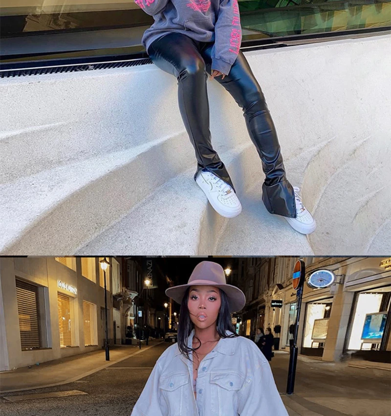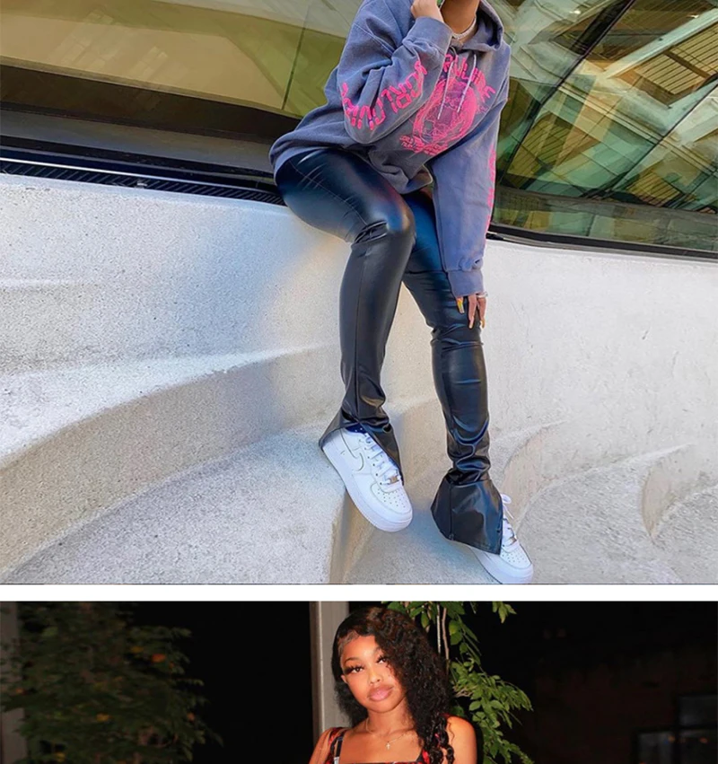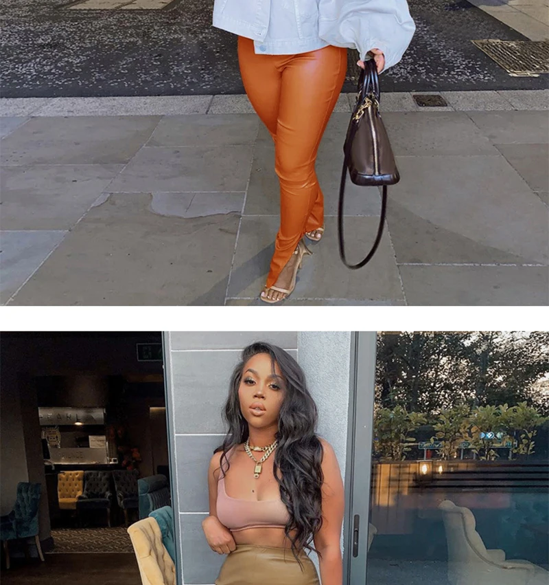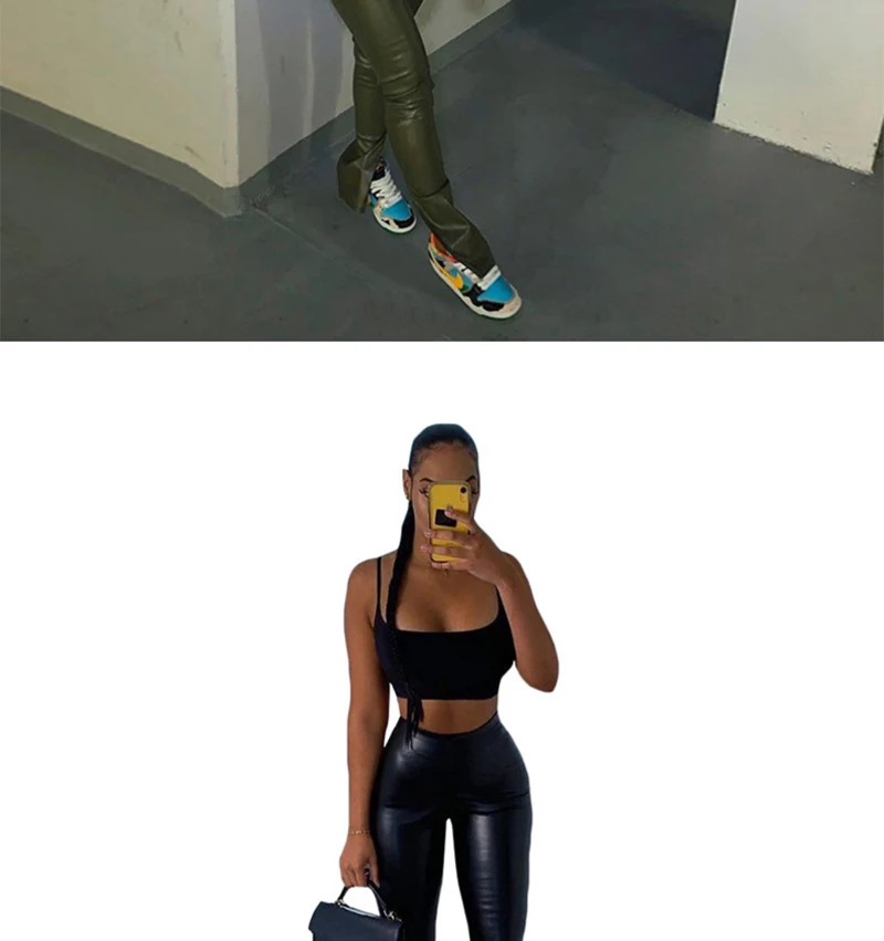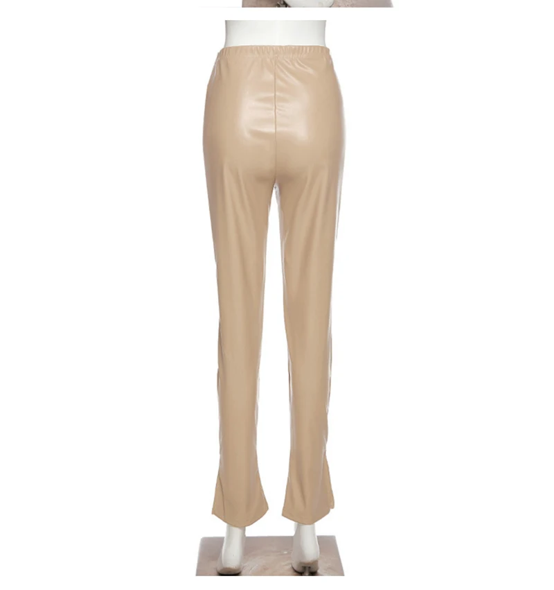 Yiallen однотонные Женские брюки из искусственной кожи с Боковым Ра...