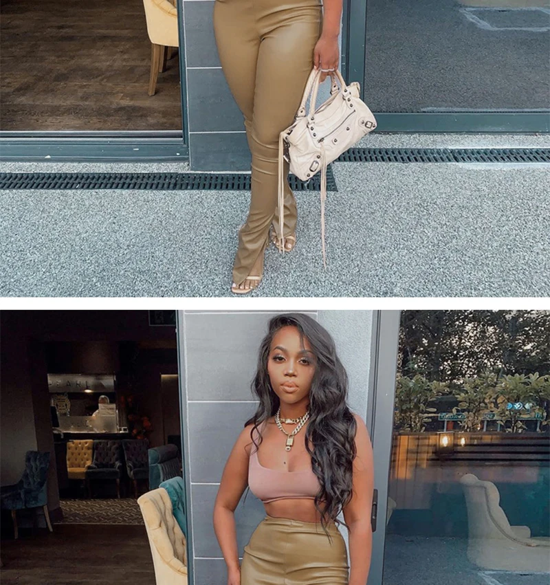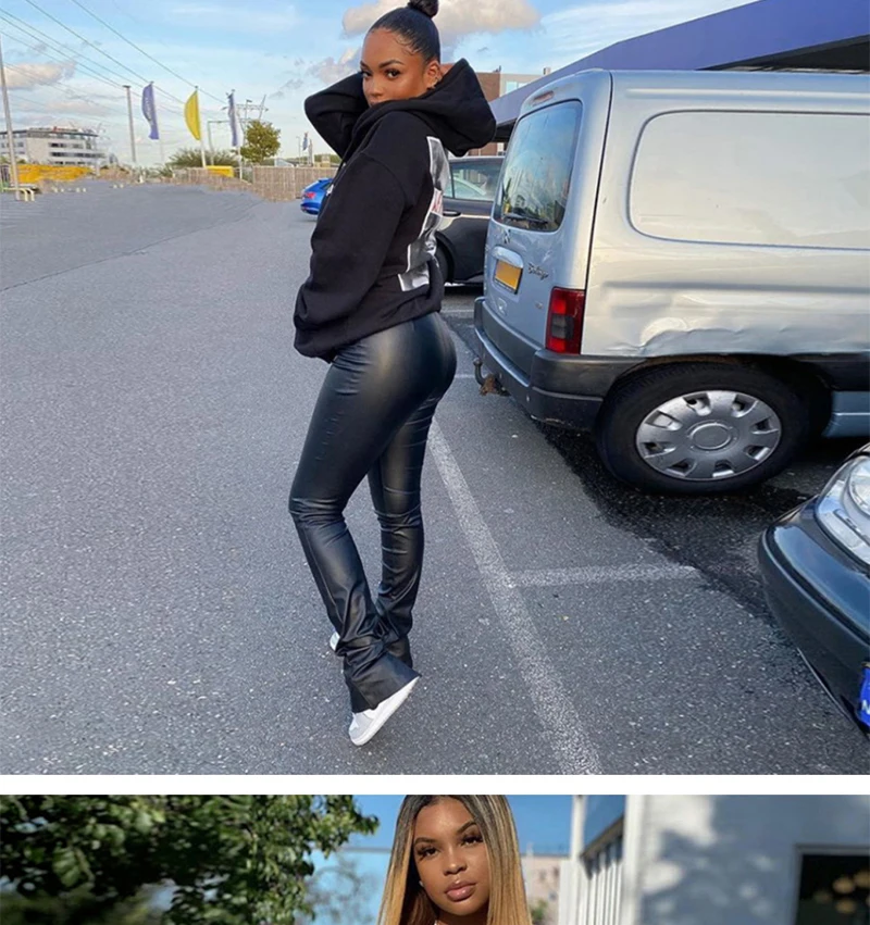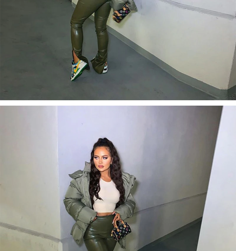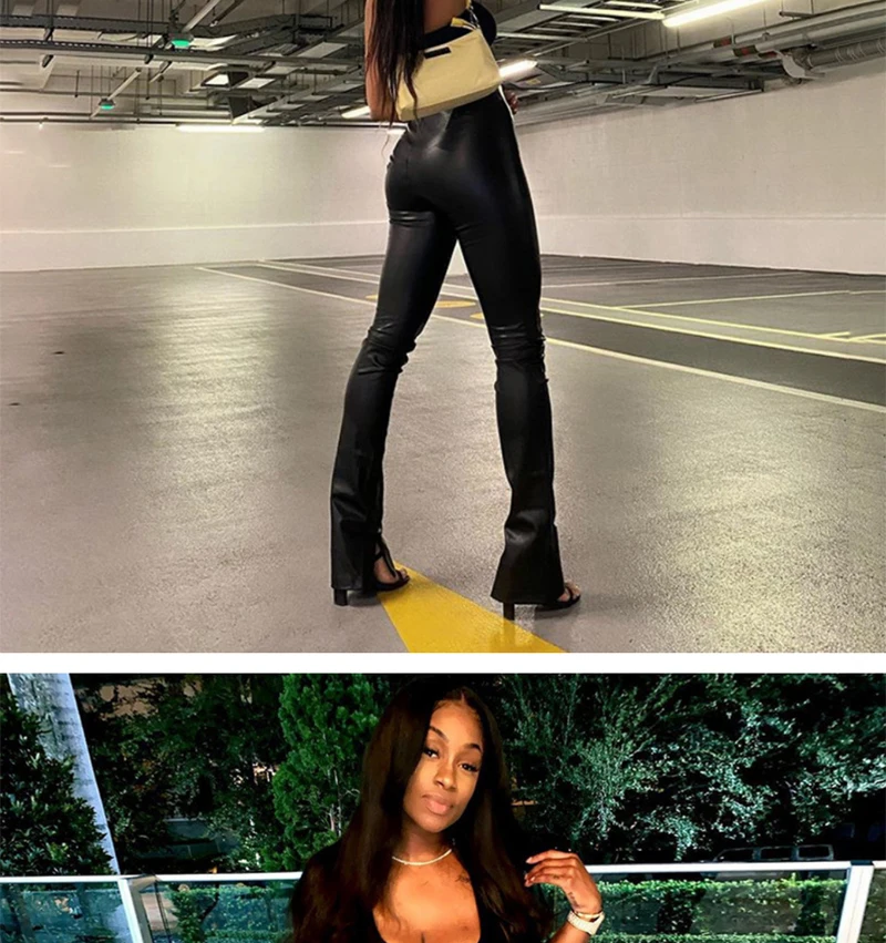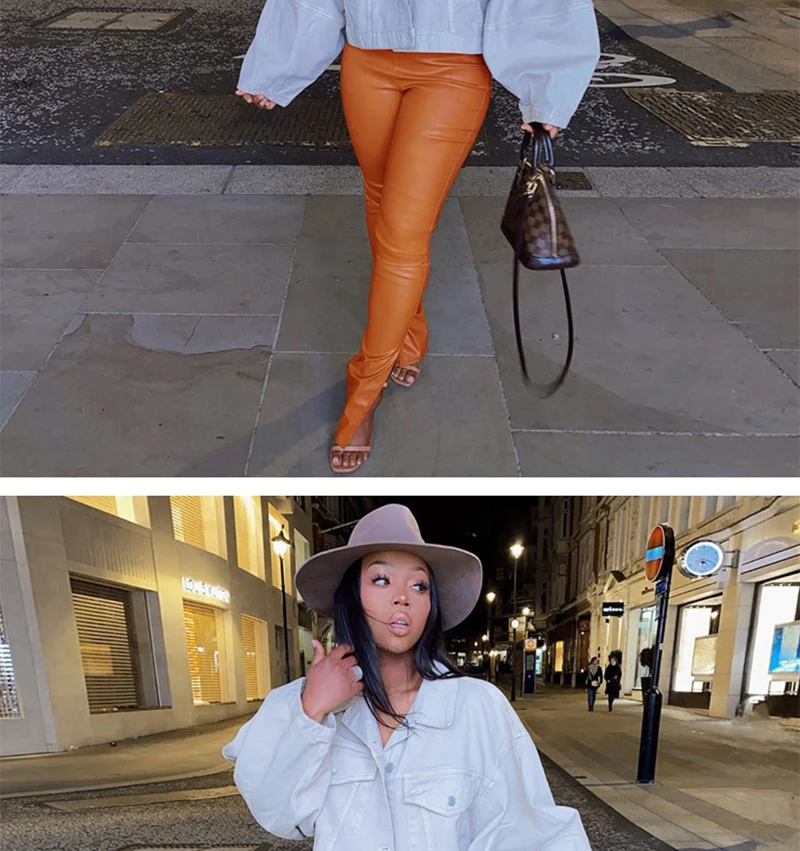 Yiallen однотонные Женские брюки из искусственной кожи с Боковым Ра...