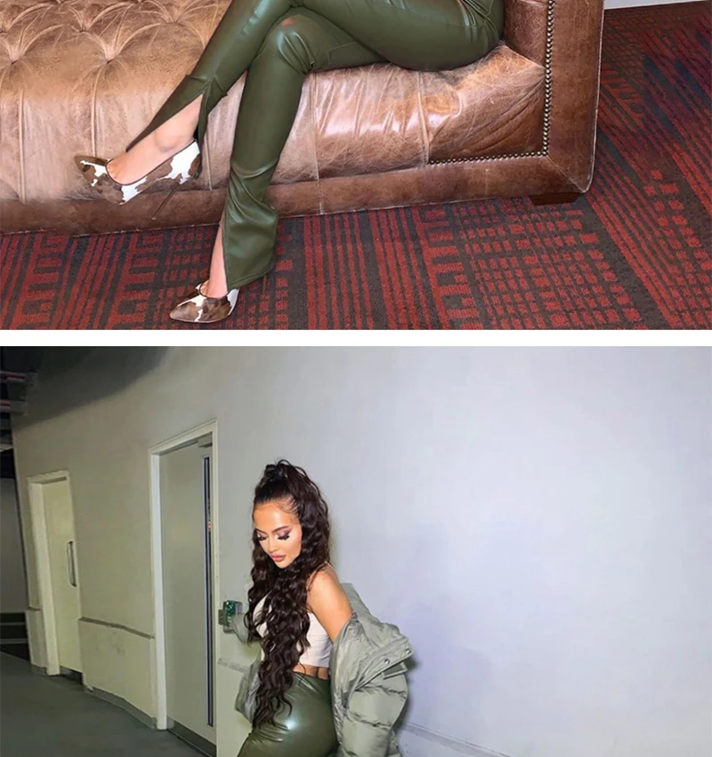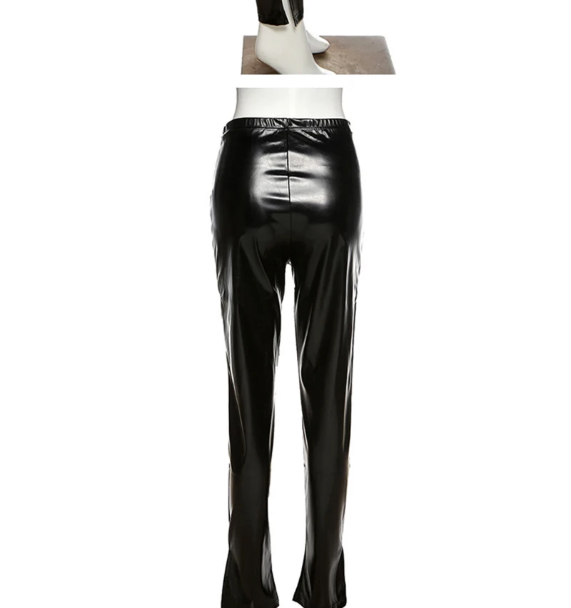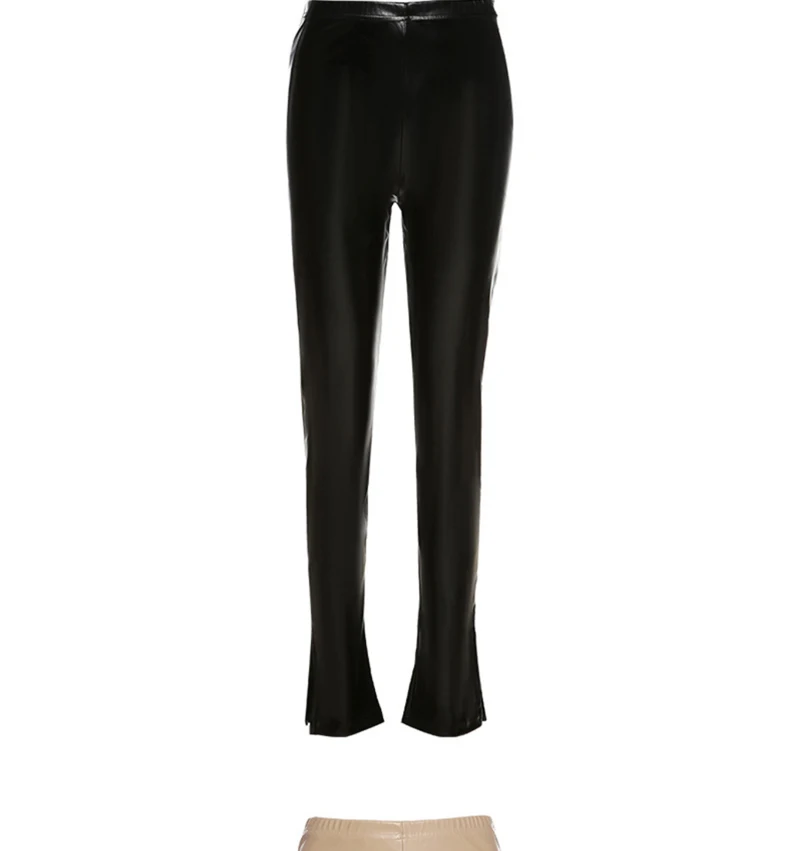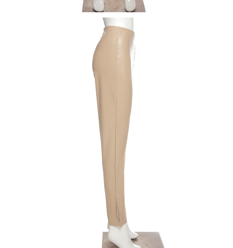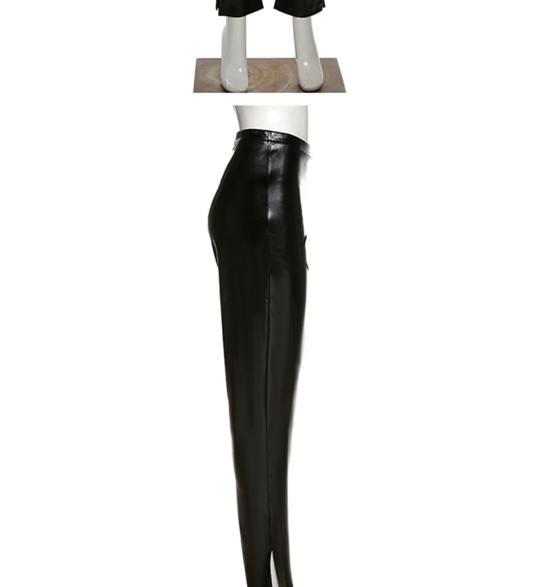 Брюки-карандаш женские из искусственной кожи, с высокой талией и разрезом на подоле