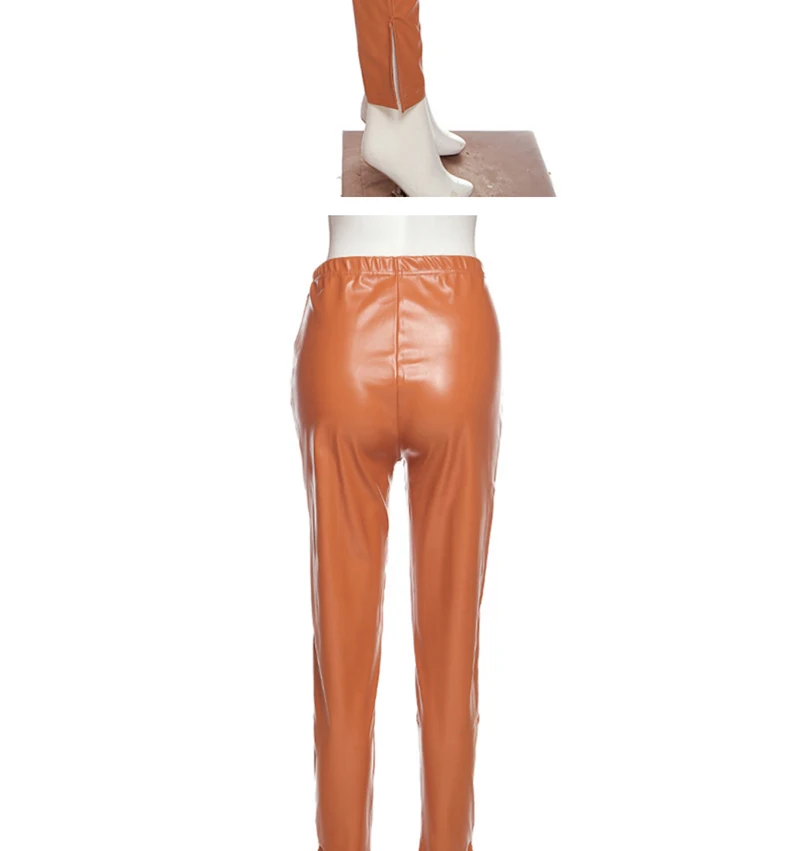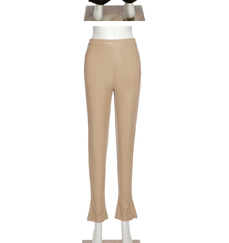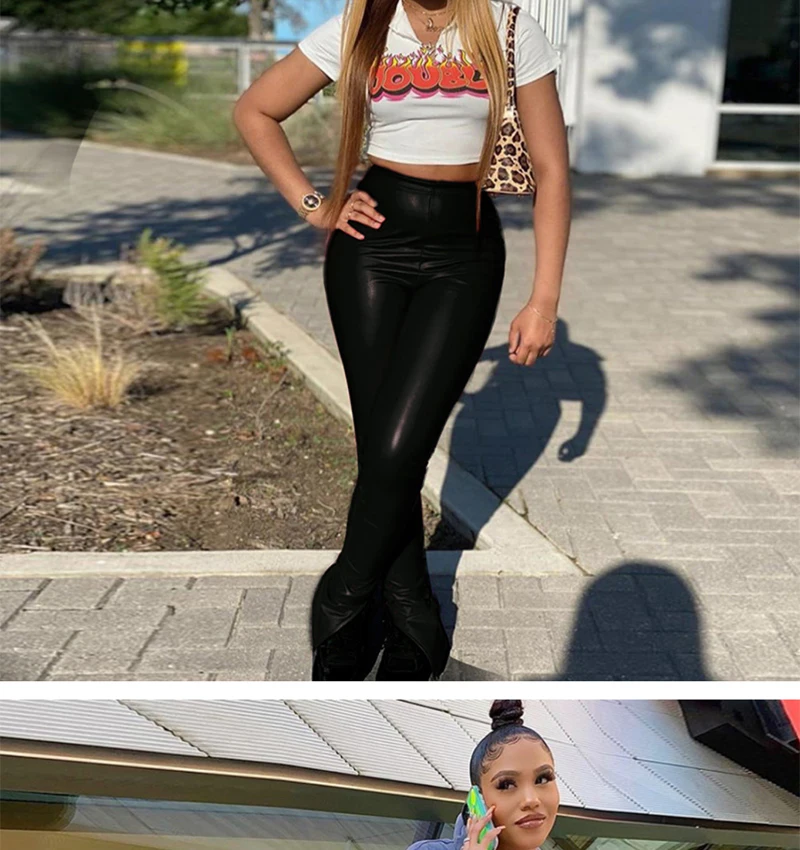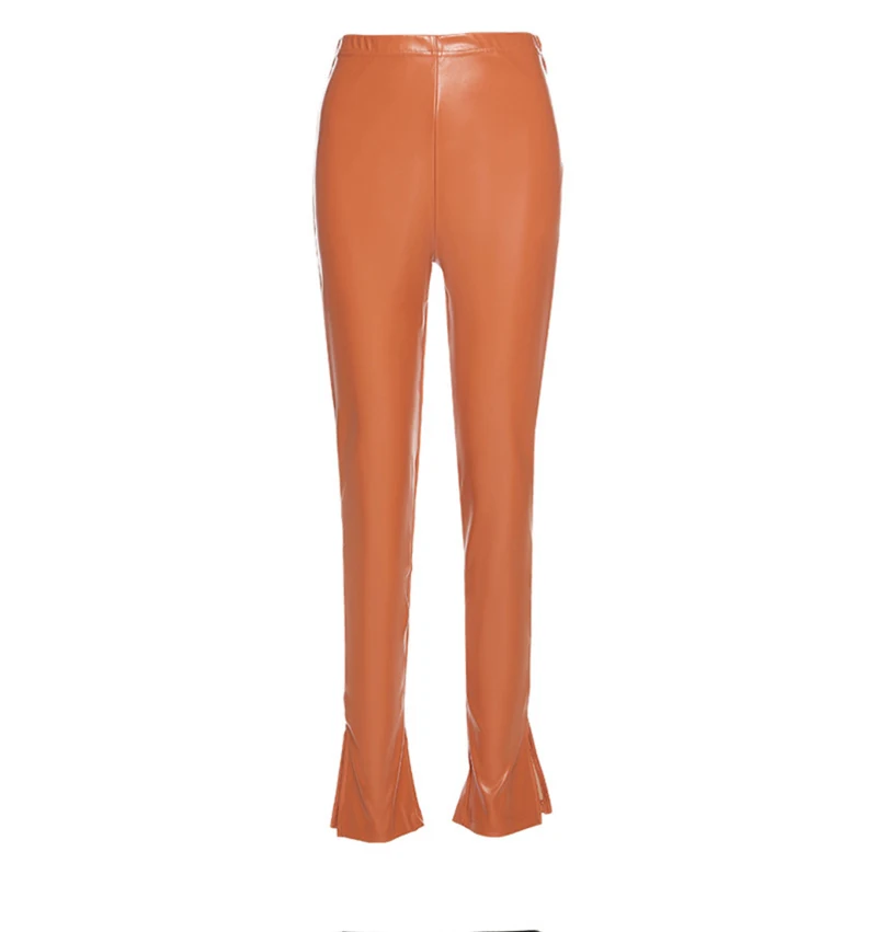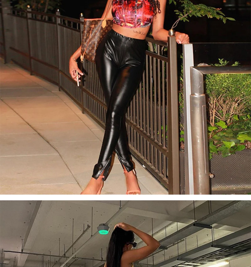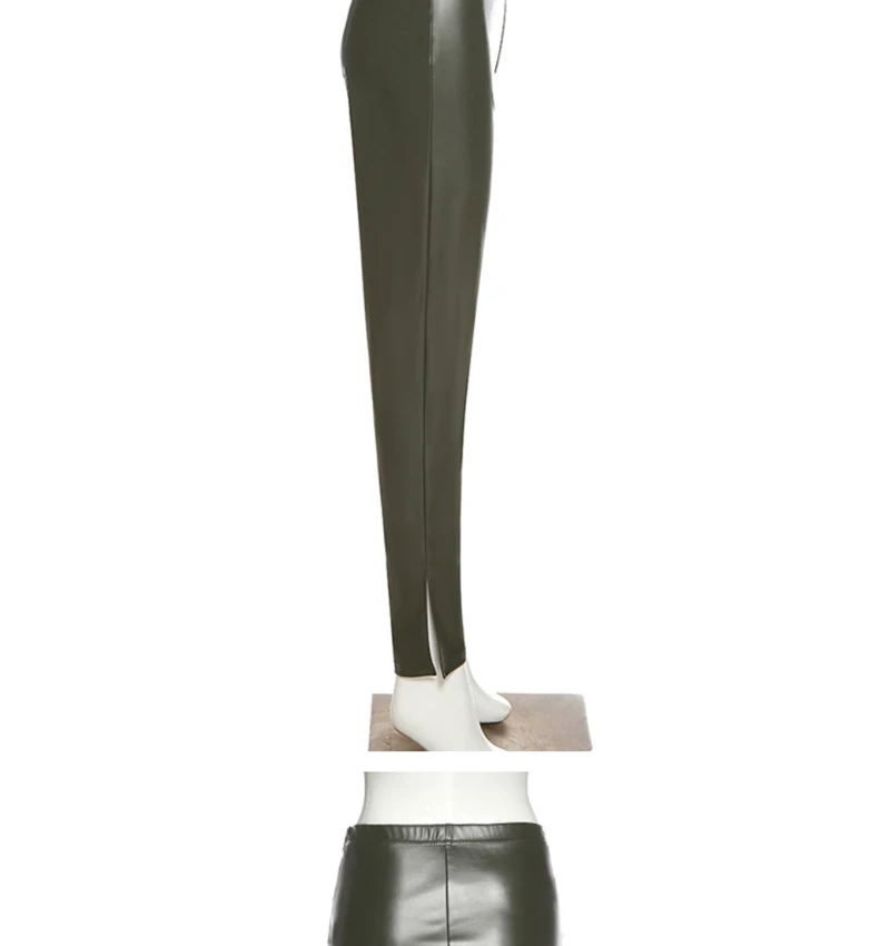 Брюки-карандаш женские из искусственной кожи, с высокой талией и разрезом на подоле