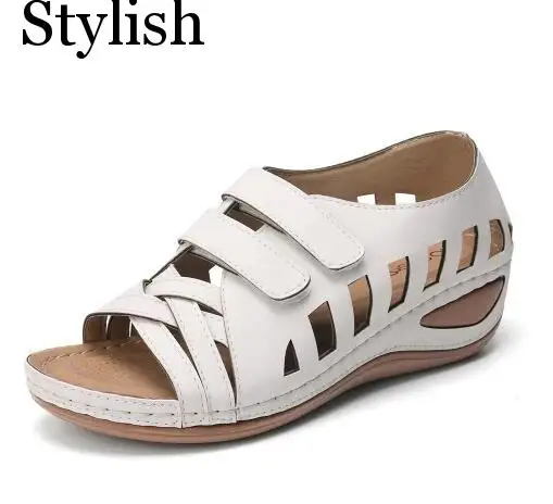 Женские босоножки на платформе; На танкетке; Обувь для женщин с открытым носком крюк, с вырезами, в римском стиле, в стиле ретро; Повседневные пляжные размера плюс, женские сандалии
