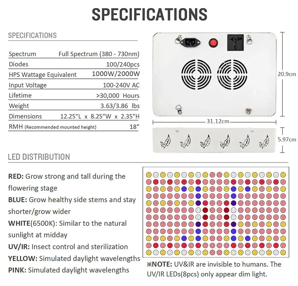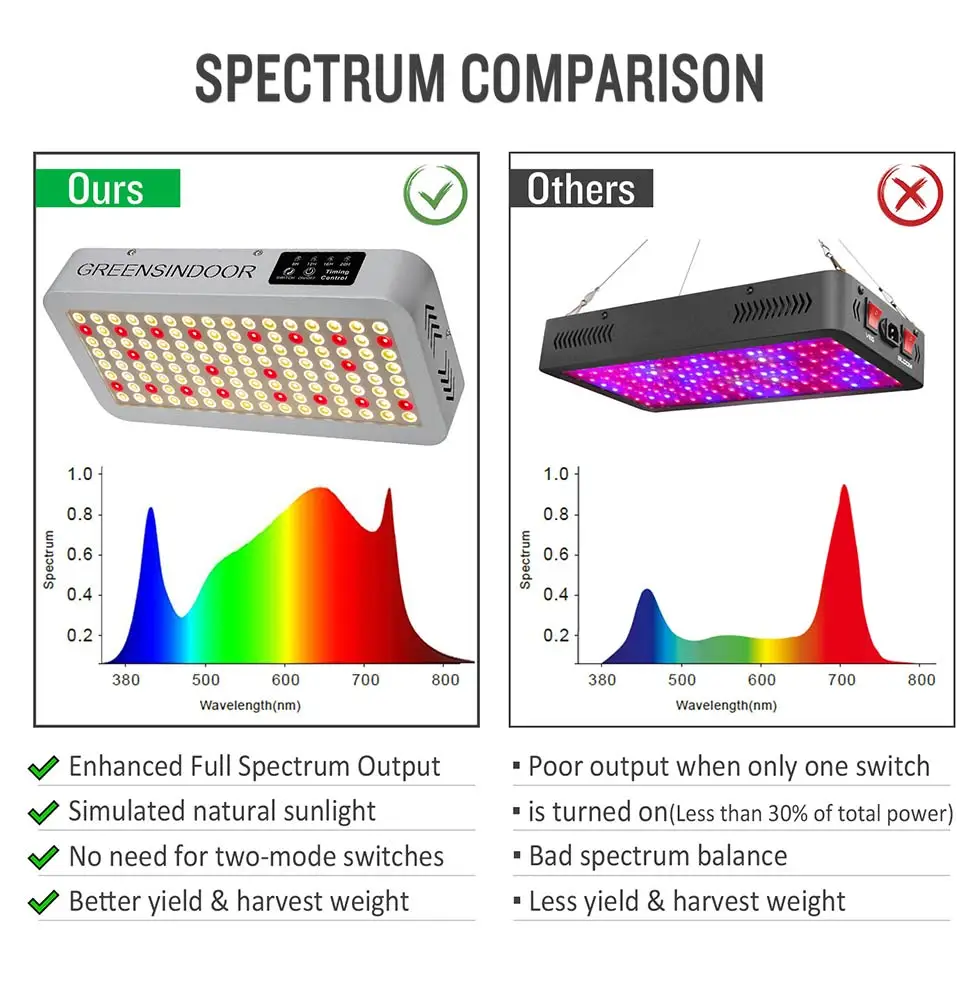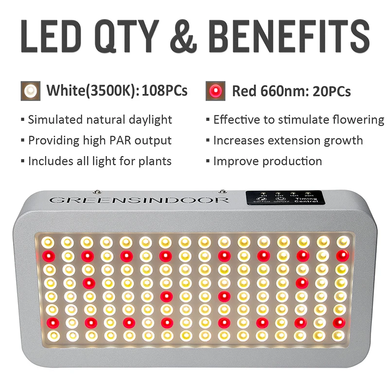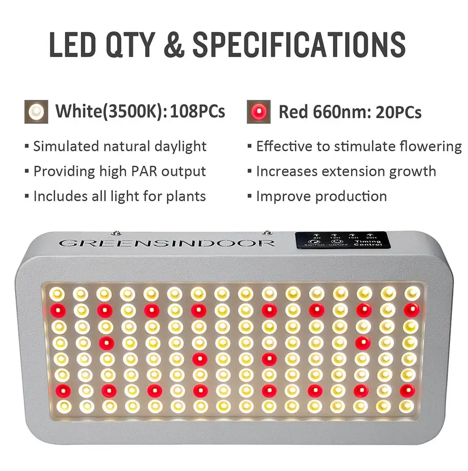 1000 Вт 2000 Вт 3000 Вт комнатный фитоламп для растений, светильник для выращивания растений, полный спектр фитолампа с маргариткой, цепочка для выращивания, лампа для выращивания палаток, короб, светильник sОсобенности:[Полный спектр]Включает в себя все спектры, которые необходимы вашим растениям. Имитация естественных огней на всех этапах роста.[Ультра яркий]Использование супер яркий светодиодный чипов. Высокая производительность PPFD. Разработан, чтобы сохранить баланс выхода PAR/Lumen.[Экономия 30% расходов на электроэнергию]Высокая светоотдача. Более низкий ватт получает больше освещения. Хорошо подходит для 3x3 'растущей палатки.[Высокомощный светильник для выращивания]Яркость 240 светодиодов/100 светодиодов растет светильник равен 2000 Вт/1000 Вт HPS/MH, но на самом деле он будет просто потреблять 170 Вт/70 Вт. (Номинальная мощность: 2000 Вт/1000 Вт, фактическая мощность: 170 Вт/70 Вт. Это энергосбережение, чем традиционные HPS)Эта яркость 126 светодиодов равна 3000 Вт HPS/MH, но на самом деле она будет потреблять всего 130 Вт (Номинальная мощность: 3000 Вт, Фактическая мощность: 130 Вт. Это энергосбережение, чем традиционный HID)[Функция цепи ромашки]Подключите 3 приспособления для совместной работы (макс. 3 шт.)[Меньше тепла]Светодиоды более эффективны, чем HID и производят меньше тепла. Садовый светильник GreensIndoor с охлаждающими вентиляторами легко рассеивать тепло.[Применение]Подходит для всей внутренней растущей среды, такой как цветы, суккуленты, кактус, травы, микрозелень и так далее.Посылка 240 светодиодов/100 светодиодов-GreensIndoor светодиодный светильник для выращивания-Шнур питания-Стандартный подвесной комплект-Регулируемая Вешалка на веревку-Термометр и гигрометр-Руководство пользователяПосылка 126 светодиодов-GreensIndoor светодиодный светильник для выращивания-Шнур питания-Стандартный подвесной комплект-Трещотка веревки-Очки для защиты глаз-Руководство пользователя