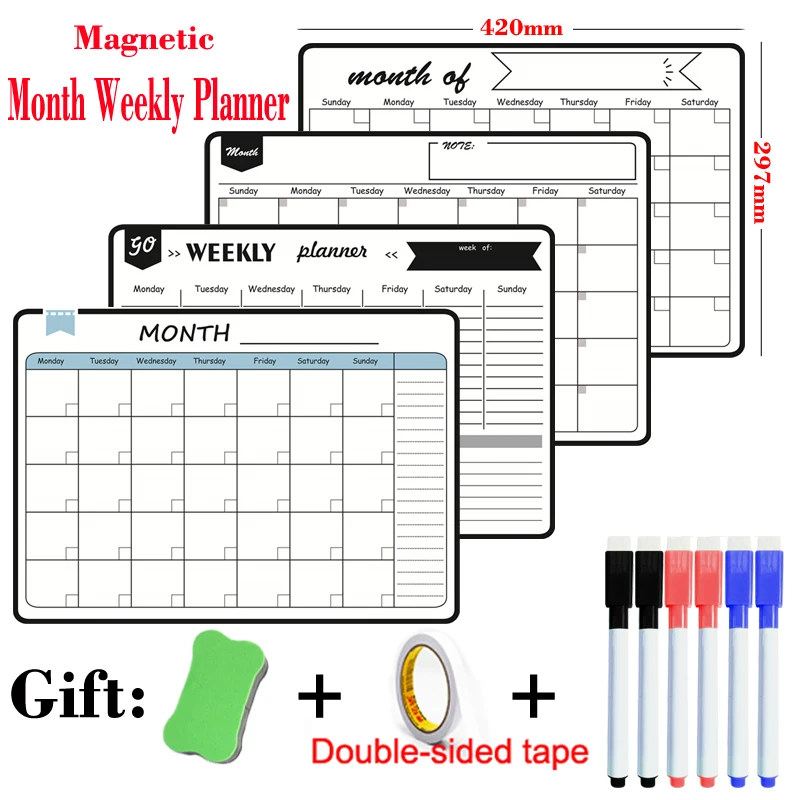 Магнитная доска для стирания, Размер А3, ежемесячный недельный план...