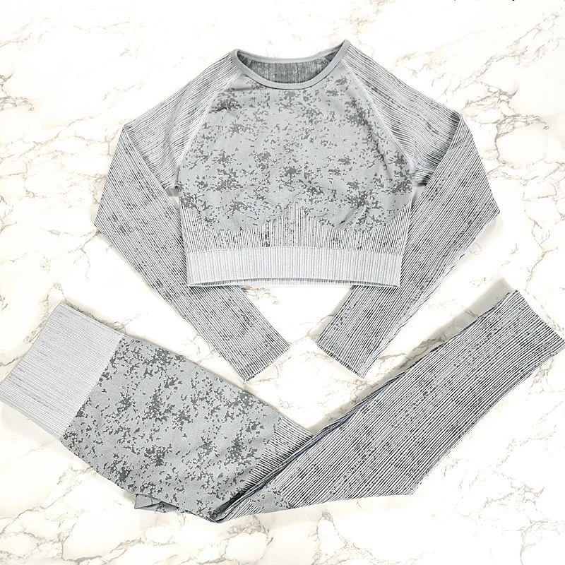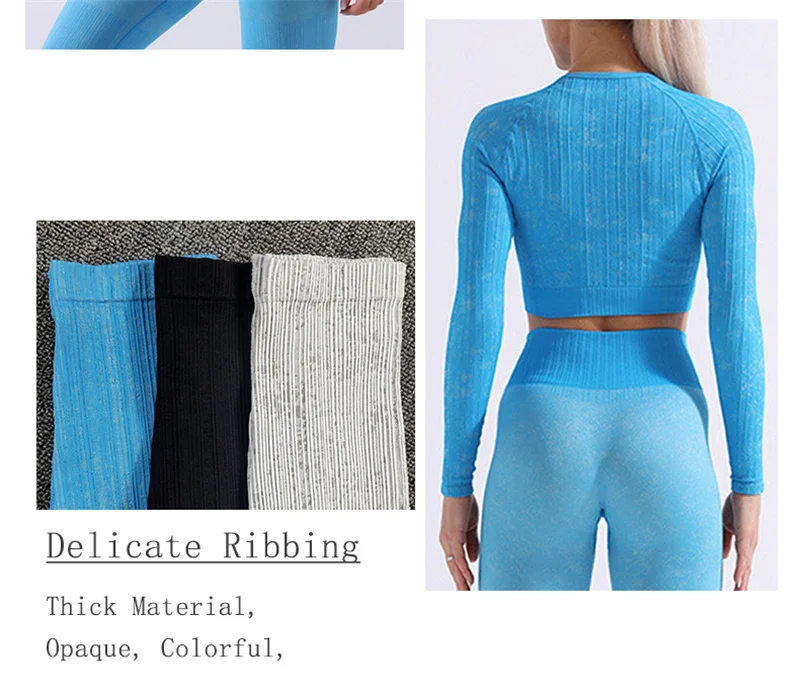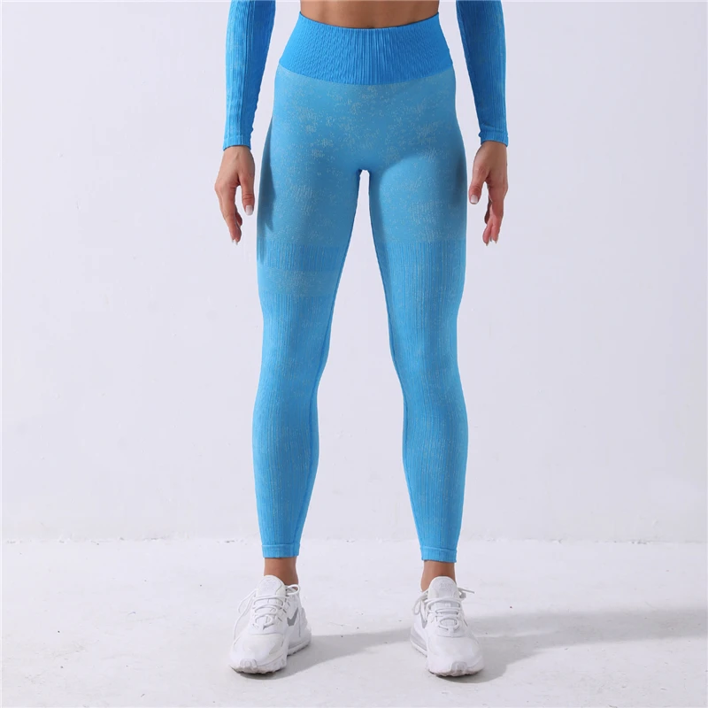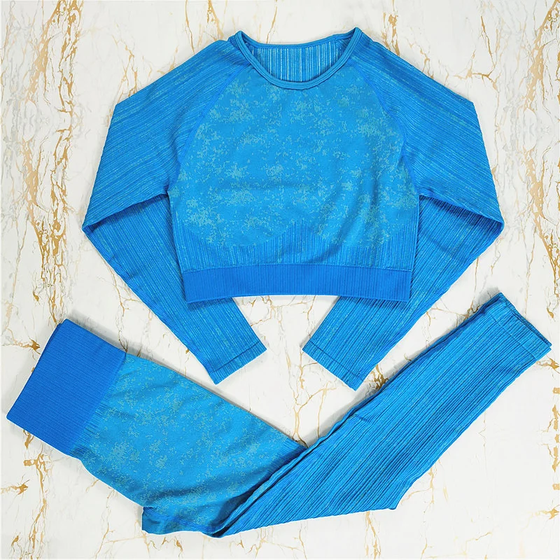 Комплект Спортивный Женский, из двух предметов, бесшовный синий топ и леггинсы