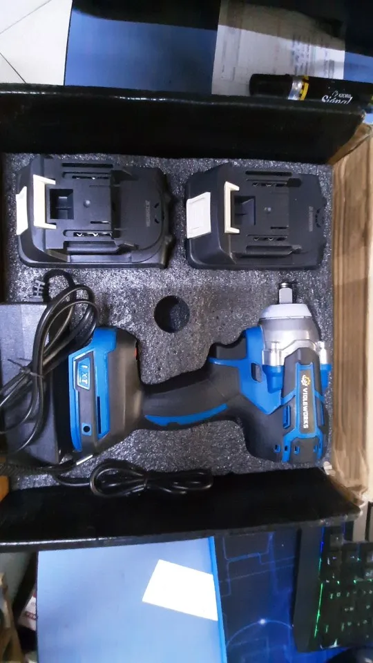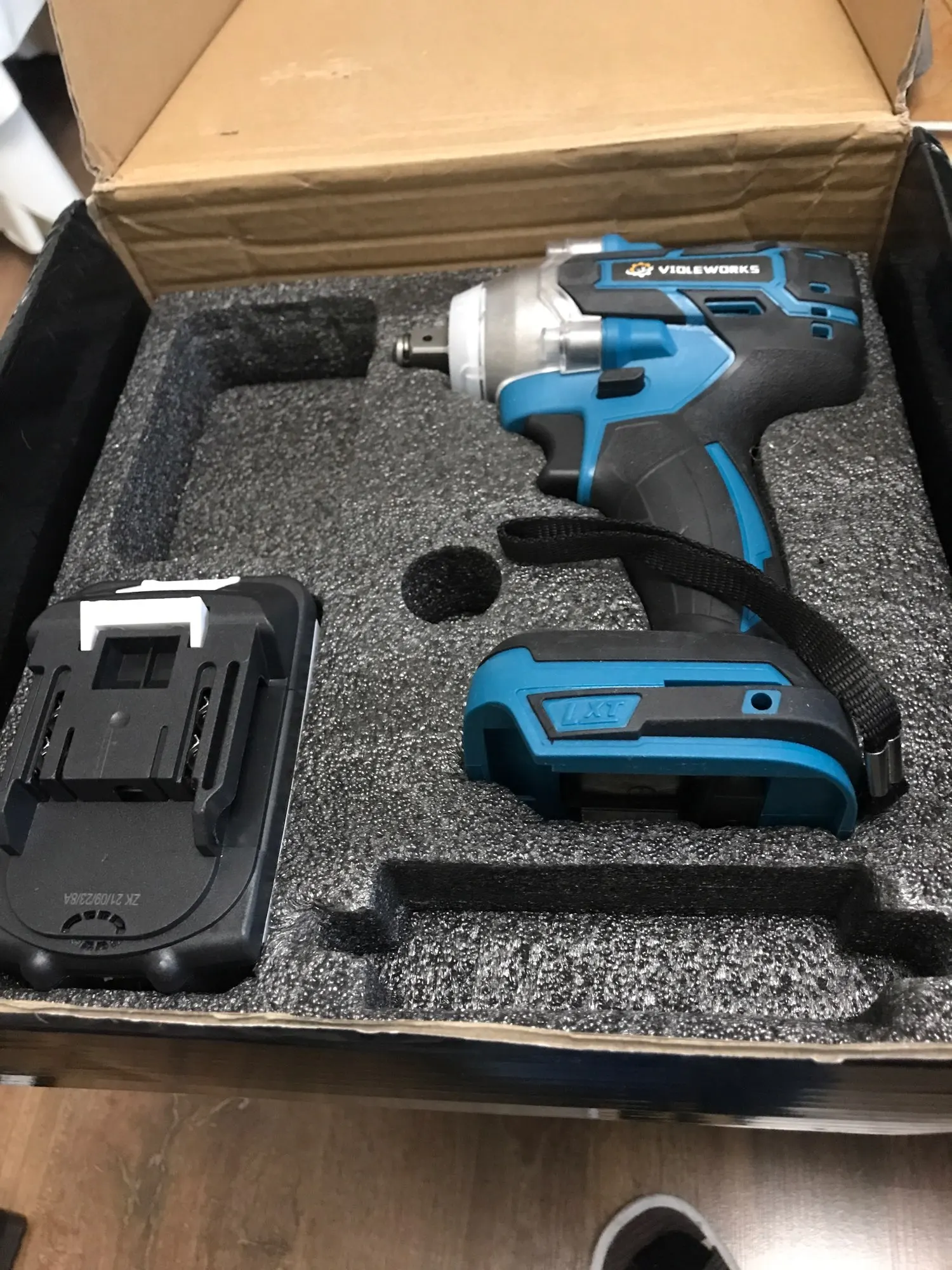 Хороший ключ имеет шок на батарее. Это очень похоже на makita. Однако упаковка откровенно оставляет желать лучшего. Она пришла поврежденной с обеих сторон. И небольшая пластиковая коробка для хранения была бы приветствоваться. Увидев цену, мы не можем иметь все.