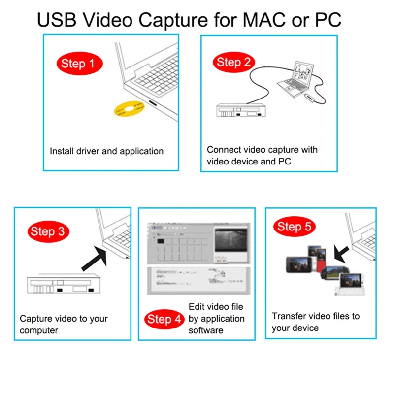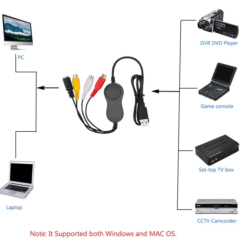 Устройство для видеозахвата USB 2,0 HD TV DVD VHS DVR аналоговый рекордер адаптер аудио-цифровой конвертации для Windows 10/8/7