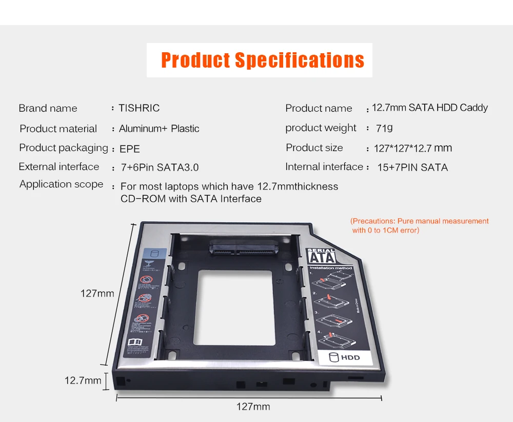 TISHRIC SATA Hdd Caddy SSD 9,5 мм 12,7 мм Hdd корпус жесткий диск чехол для ноутбука CD-ROM DVD-ROM Оптический отсек