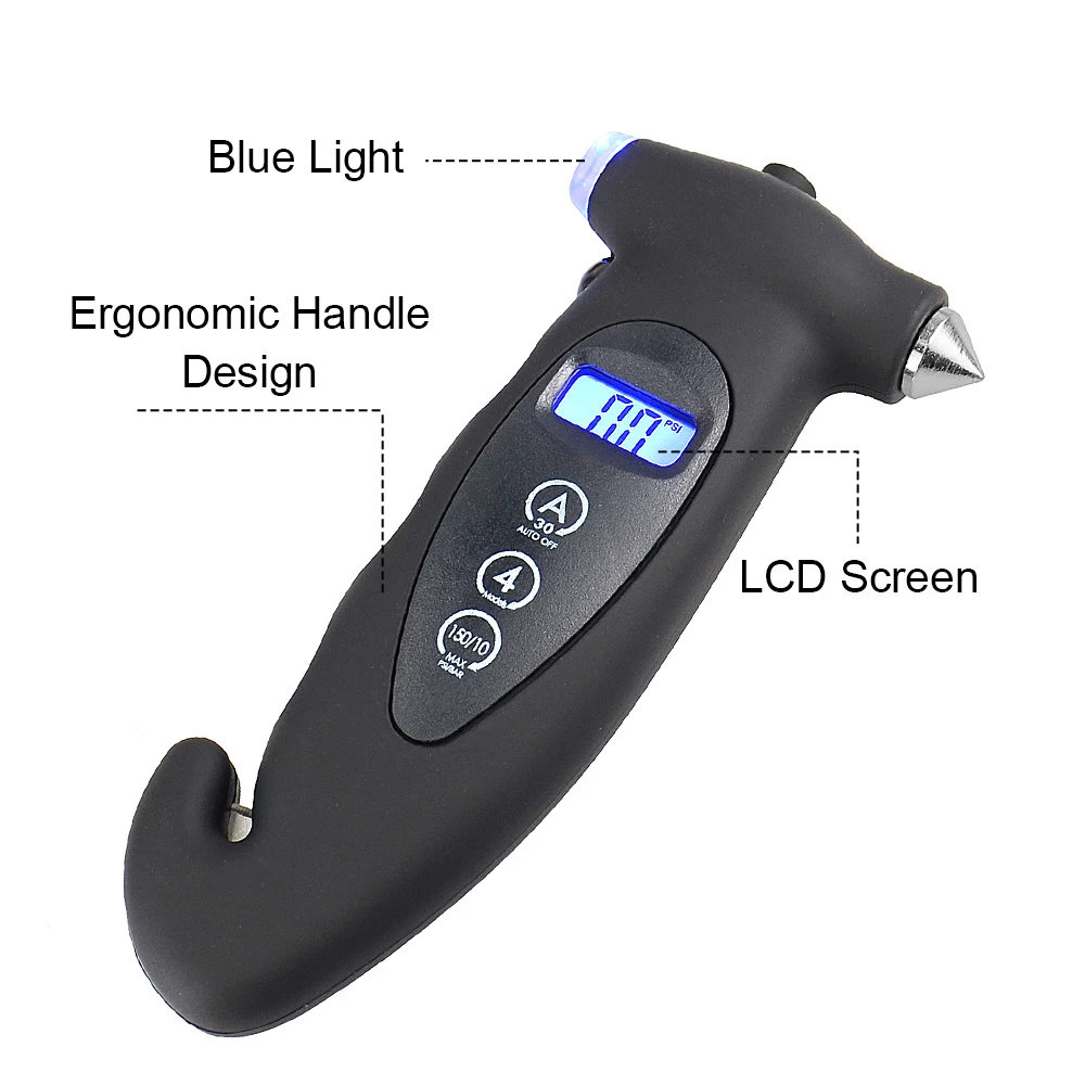 5-в-1 шин Давление цифровой датчик мониторинга шины для легковых автомобилей Воздушный Давление измерителем влажности и температуры ЖК-дисплей Дисплей с разбитое окно молоток