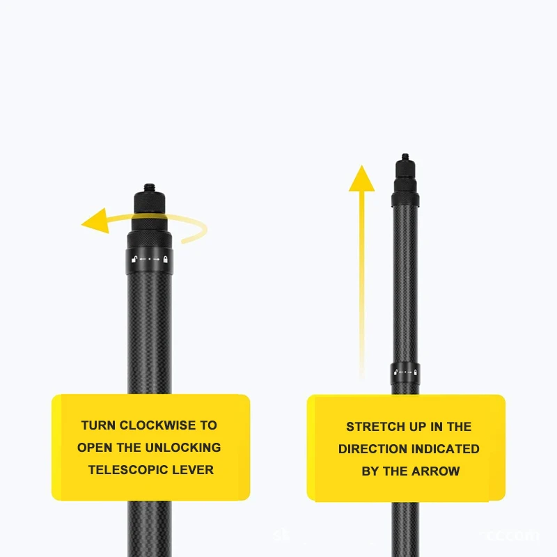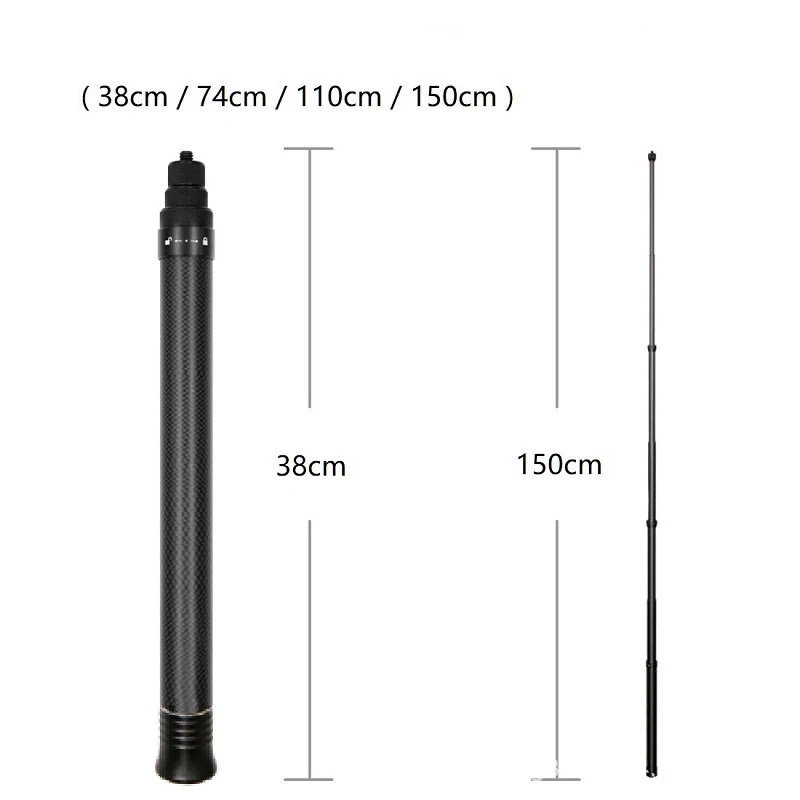 1,5 м сверхлегкий углеродного волокна Невидимый ручной монопод для селфи с выдвижной полюсный монопод для Insta360 один X2 один R GoPro аксессуары Особенности: 1. Идеальный компаньон камеры, устраняет следы селфи-палки и автоматически скрывает селфи-палку на фотографиях и видео с помощью передовых алгоритмов. 2. Корпус из углеродного волокна прочный и прочный, весом всего 123,8 г. 3. Максимальная длина: 150 см, минимальная длина: 38 см. 4. Четыре регулируемых длины обеспечивают различные перспективы. (38 см/74 см/110 см/150 см) 5. Верх: Стандартные винты 1/4 дюйма. Дно: стандартное отверстие 1/4 дюйма. 6. Его можно использовать с ручкой времени пули, чтобы снимать время пули. 7. Совместимость: для Insta360 ONE X2 / ONE R / ONE X /GoPro Спецификация: Материал: углеродное волокно Вес: 123,8 г Максимальная длина: 150 см Самая короткая длина: 38 см Цвет: черный Посылка: 1 * селфи-палка Примечание: 1. Будьте осторожны при втягивании селфи-палки, чтобы избежать царапин 2. При удержании или установке по вертикали сильная вибрация может привести к тому, что палка для селфи откажется на более короткую длину. Избегайте сильных вибраций и держите горизонтальную линию параллельно земле. Перед регулировкой длины обязательно Зафиксируйте селфи-палку.
