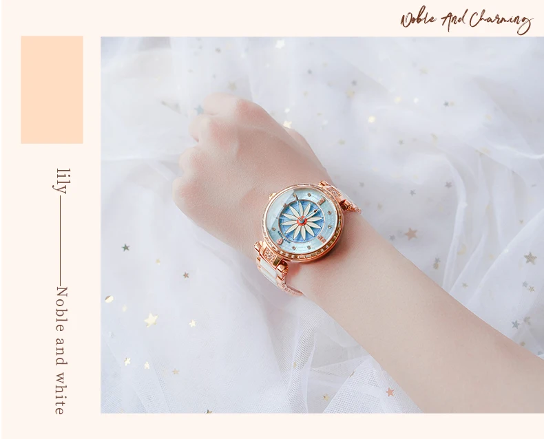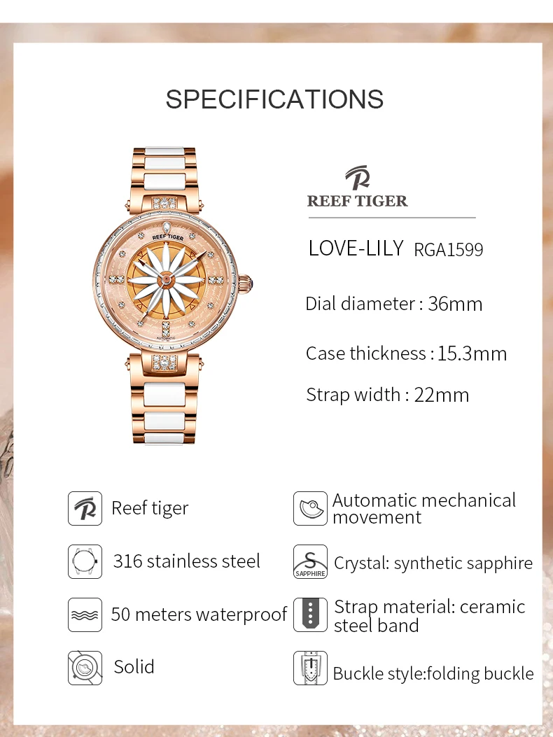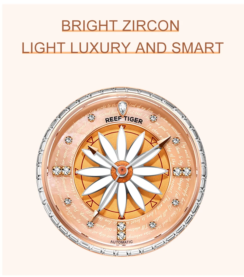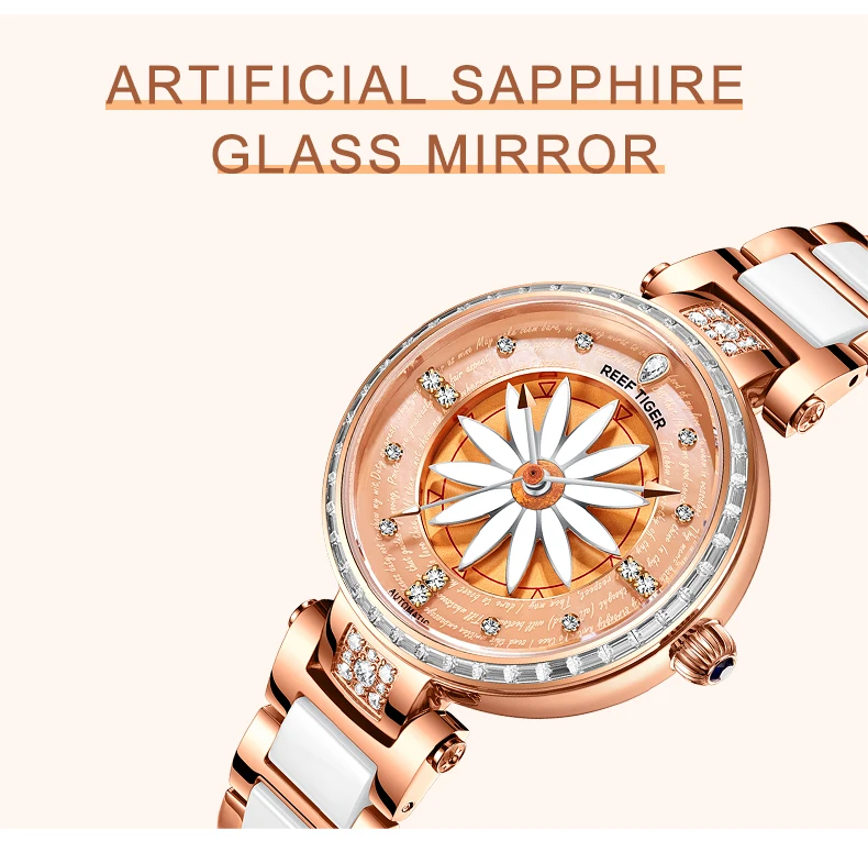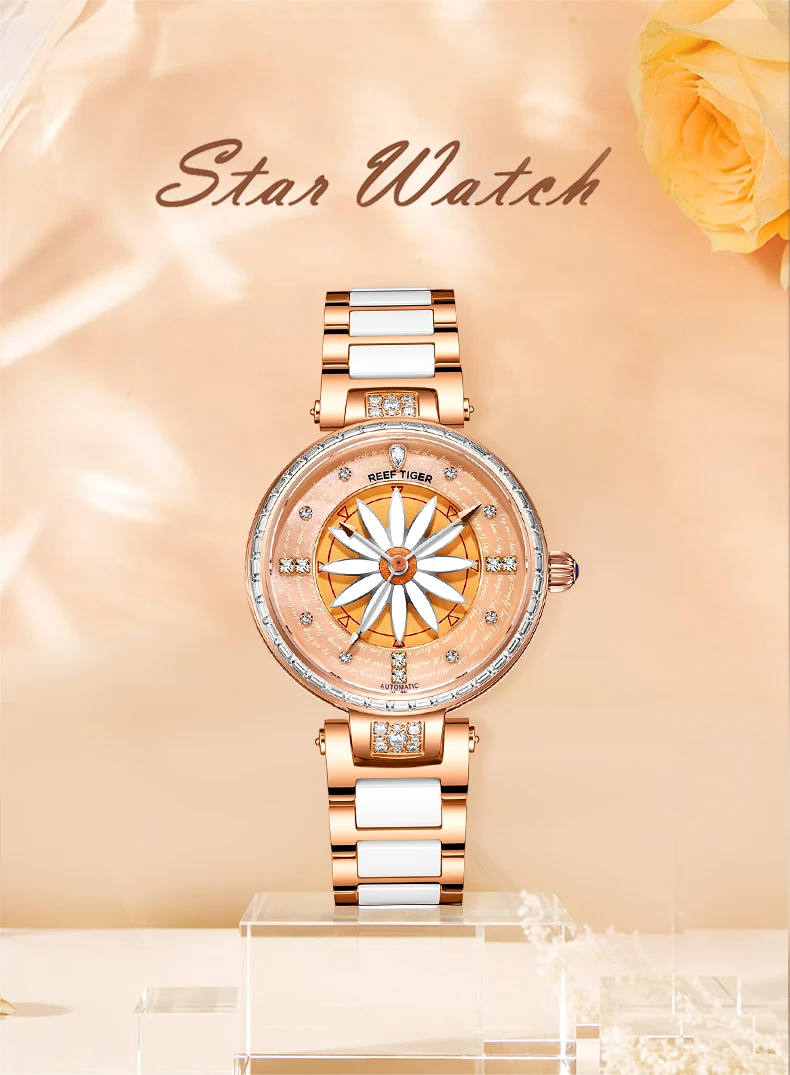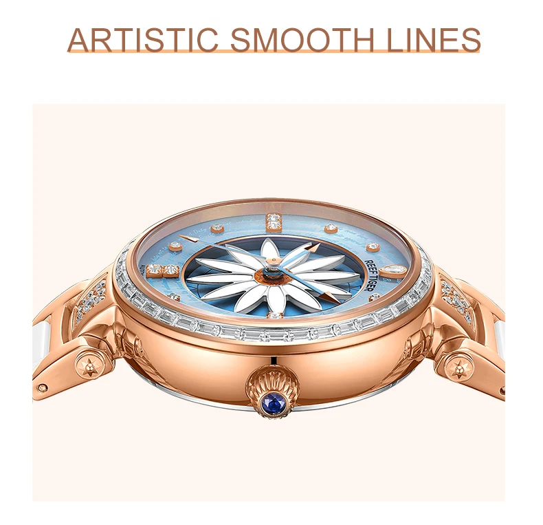 Женские часы-автомат Риф ТигрRT, модные наручные часы с лилией из розового золота с бриллиантами, RGA1599
