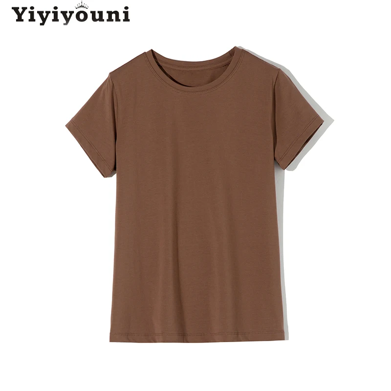 Футболка Yiyiyouni Женская Базовая с коротким рукавом, повседневная хлопковая Однотонная рубашка с круглым вырезом, корейский топ, белый черный, на лето
