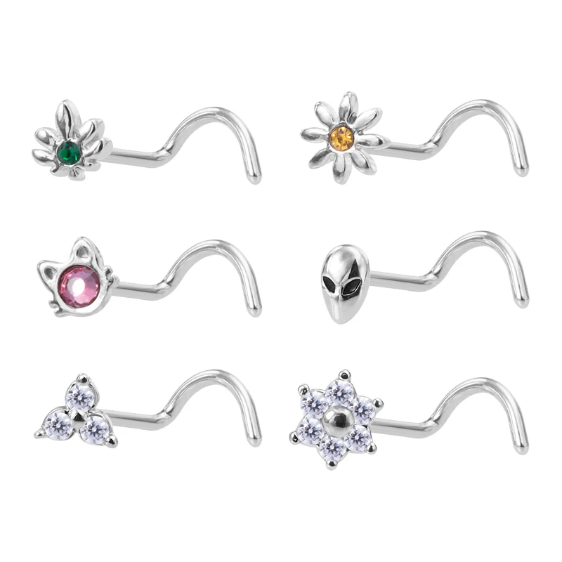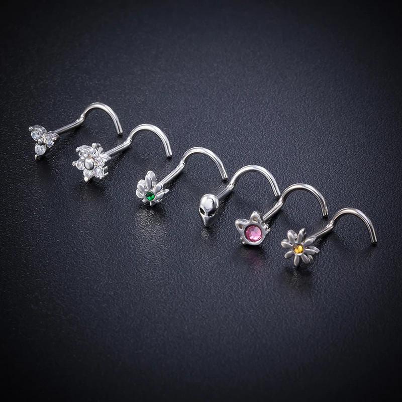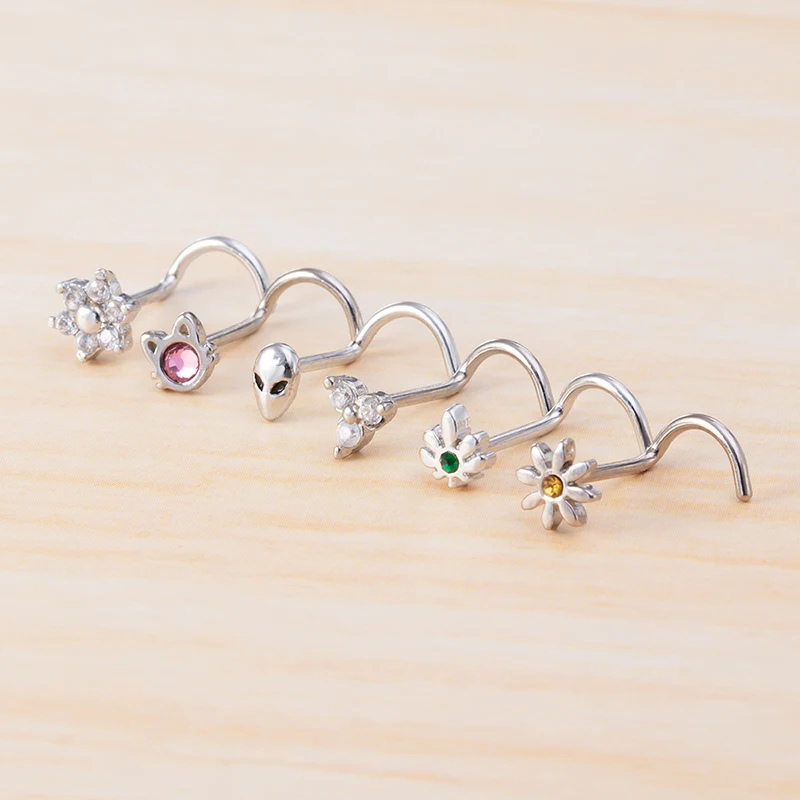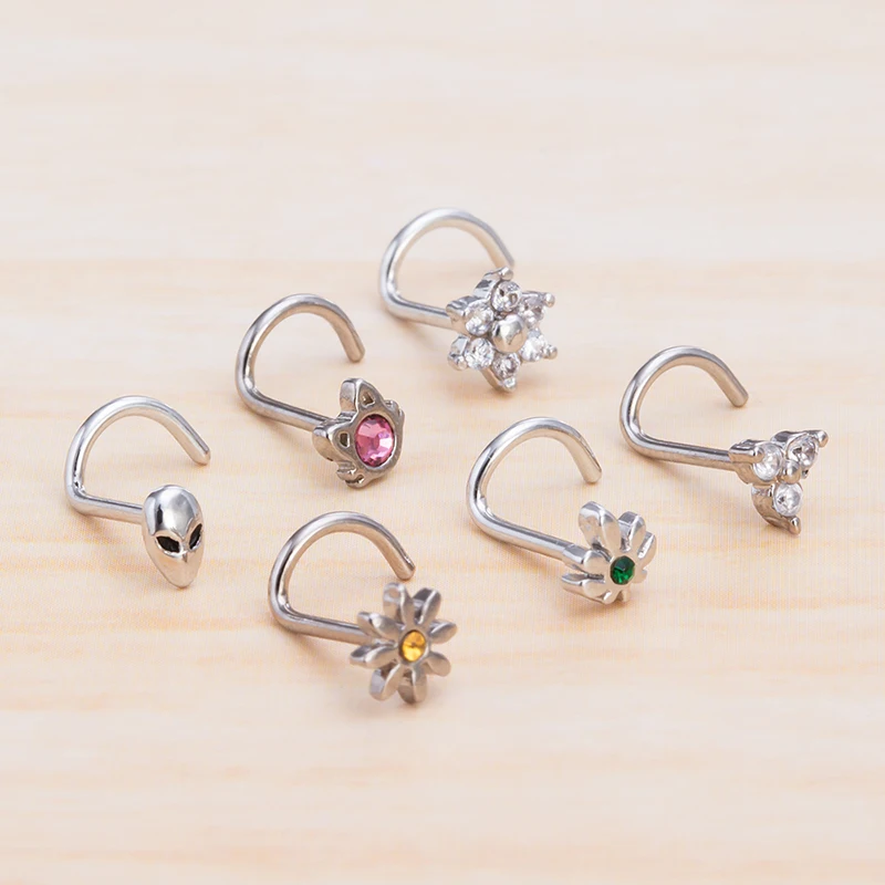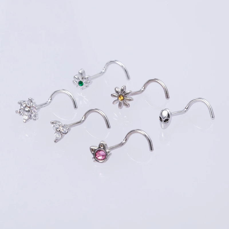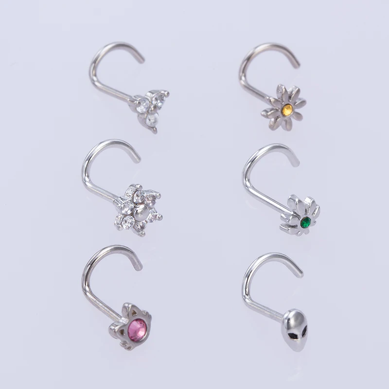 1 шт. CZ Кристалл пирсинг в нос из нержавеющей стали кольца в нос винт для ноздри L-образные шпильки для женщин украшения для тела подарок 20 г
