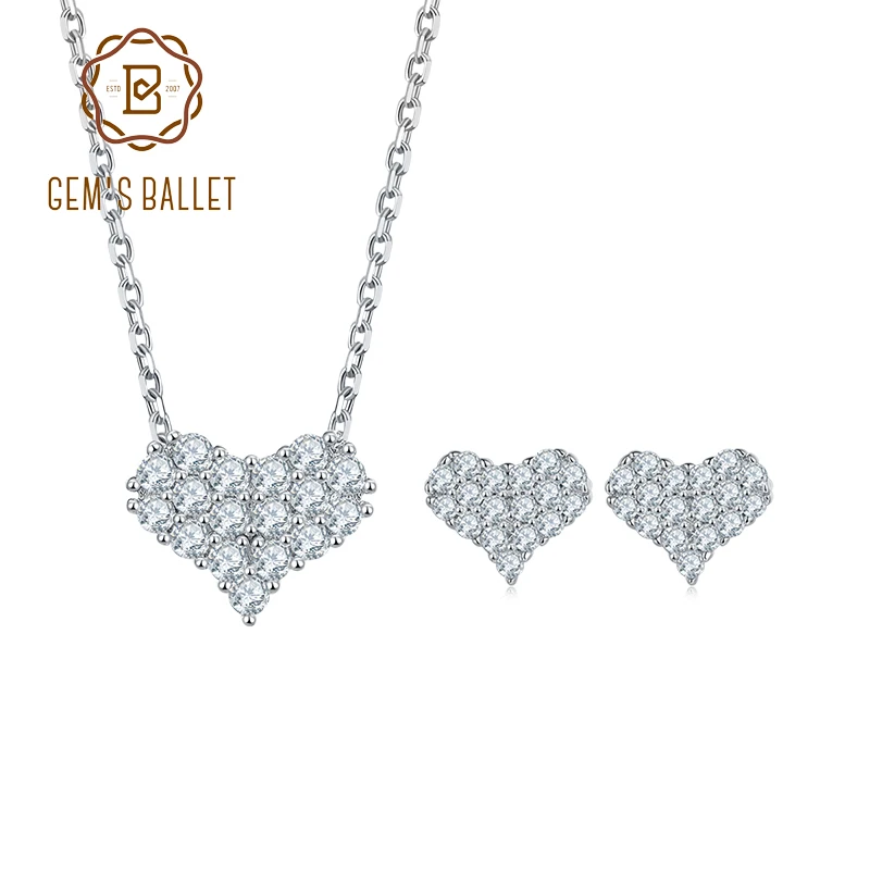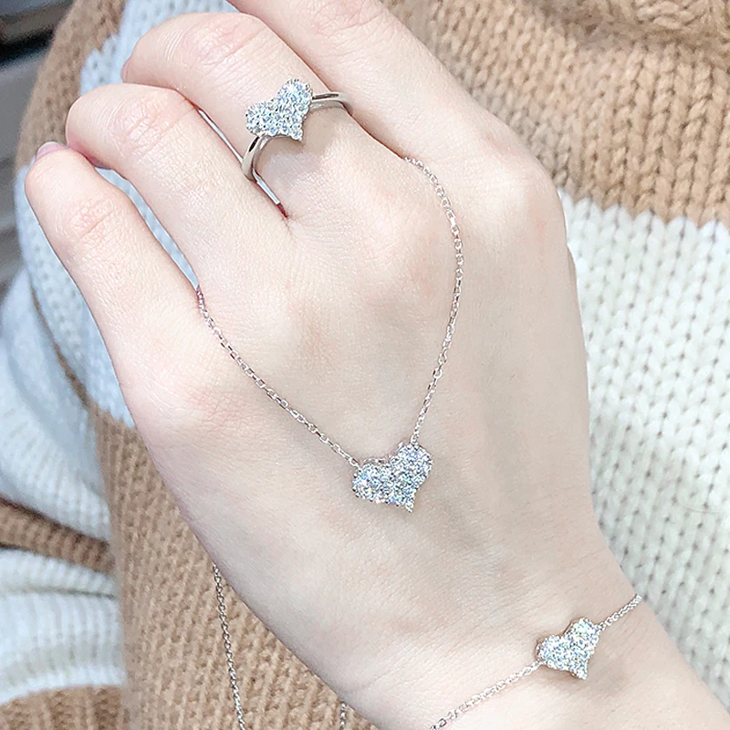 Набор женских ювелирных изделий из серебра 925 пробы, с бриллиантами, сердцем
