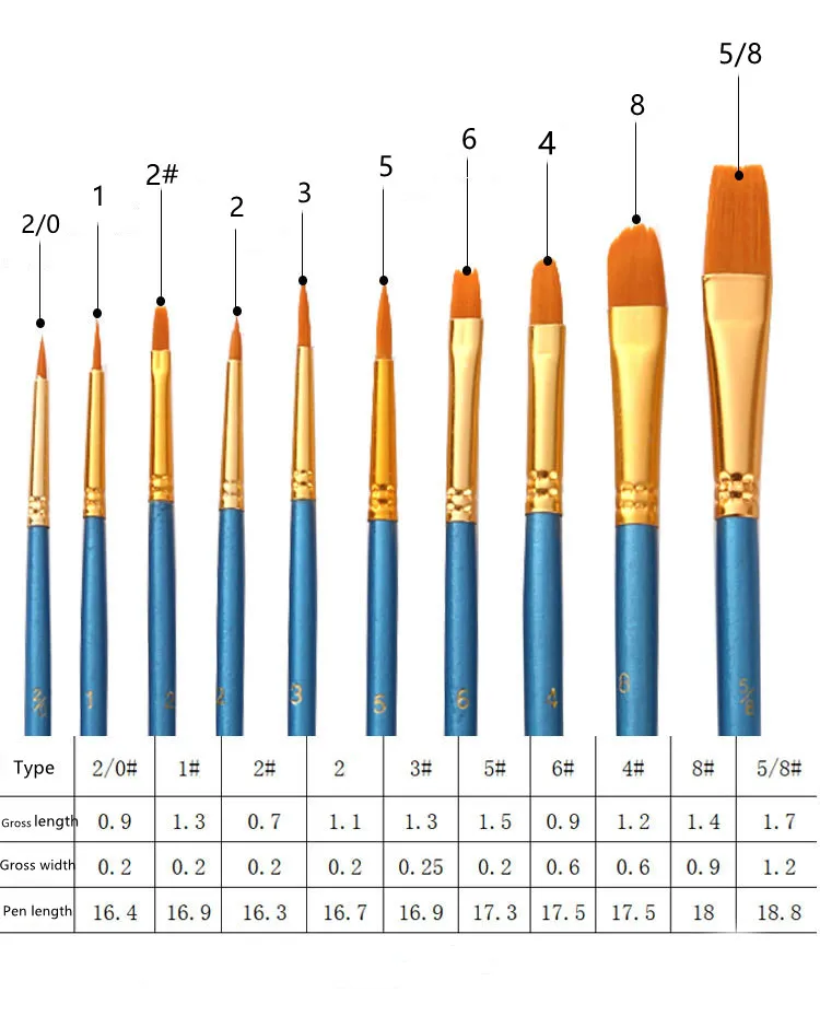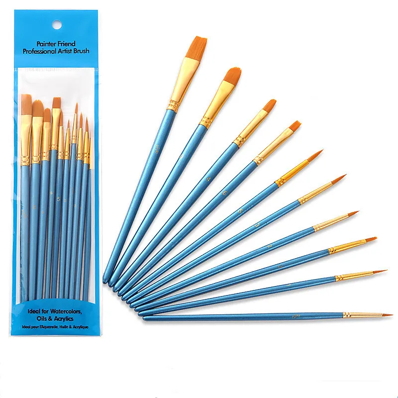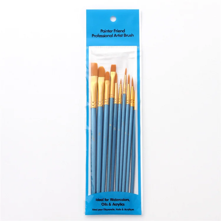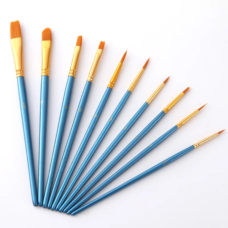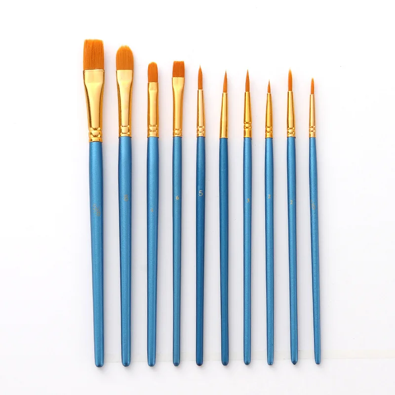 Набор нейлоновых кистей для рисования, масляная краска, акриловая деревянная ручка, цвет синий шт.упак., товары для рукоделия, 10 шт.