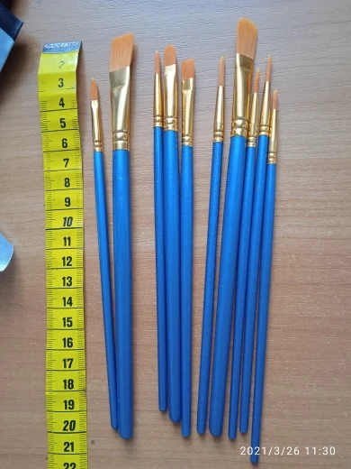Люблю кисти из синтетики. На внешний вид отличные. По назначению ещё не использовались. Набиты хорошо, правда присутствует небольшой запах.