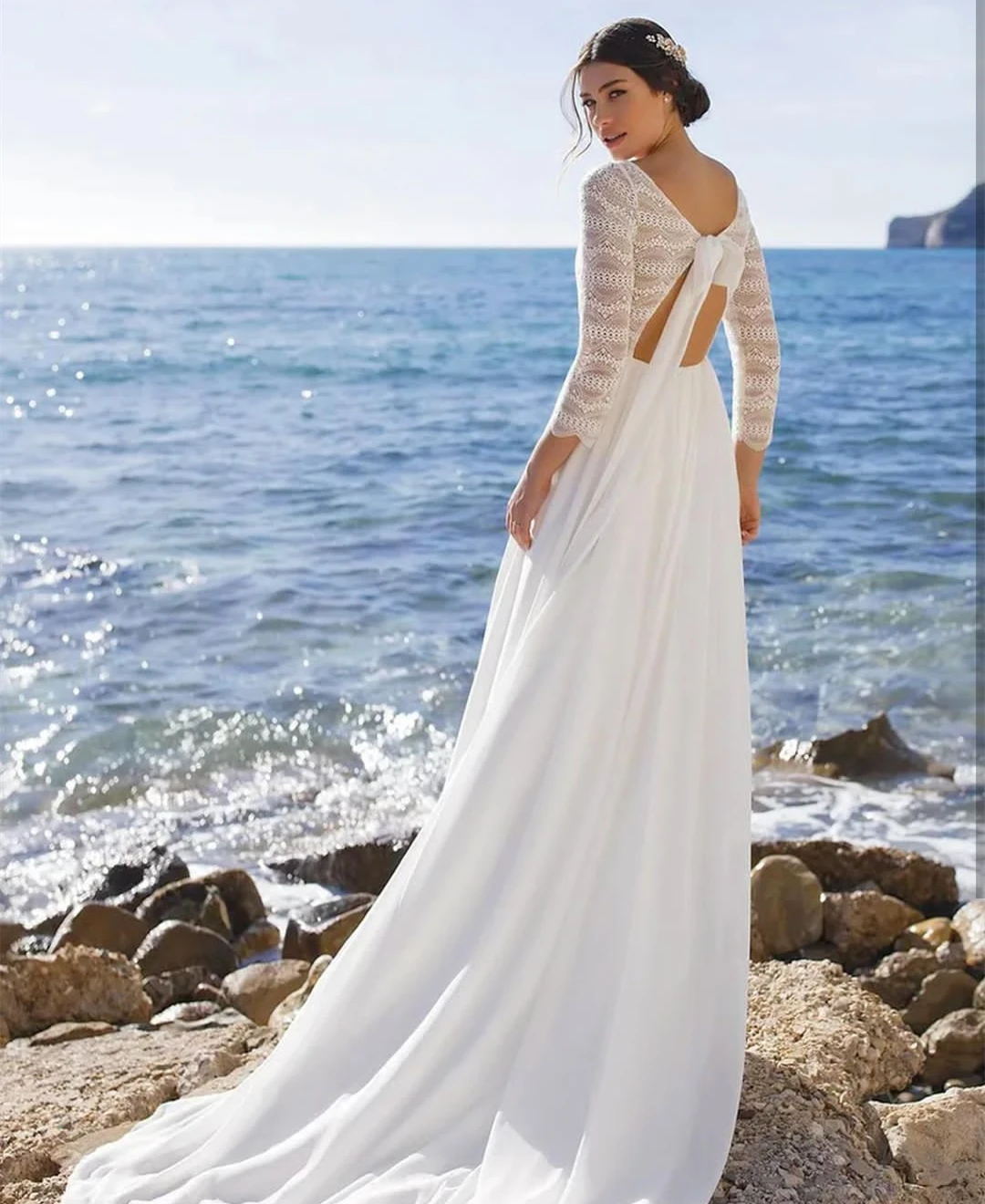 Элегантное сексуальное свадебное платье в стиле бохо с длинными рук...