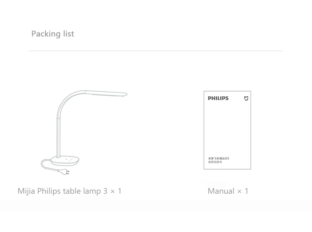 ● Настольная лампа Mijia Philips 3 × 1● Руководство × 1