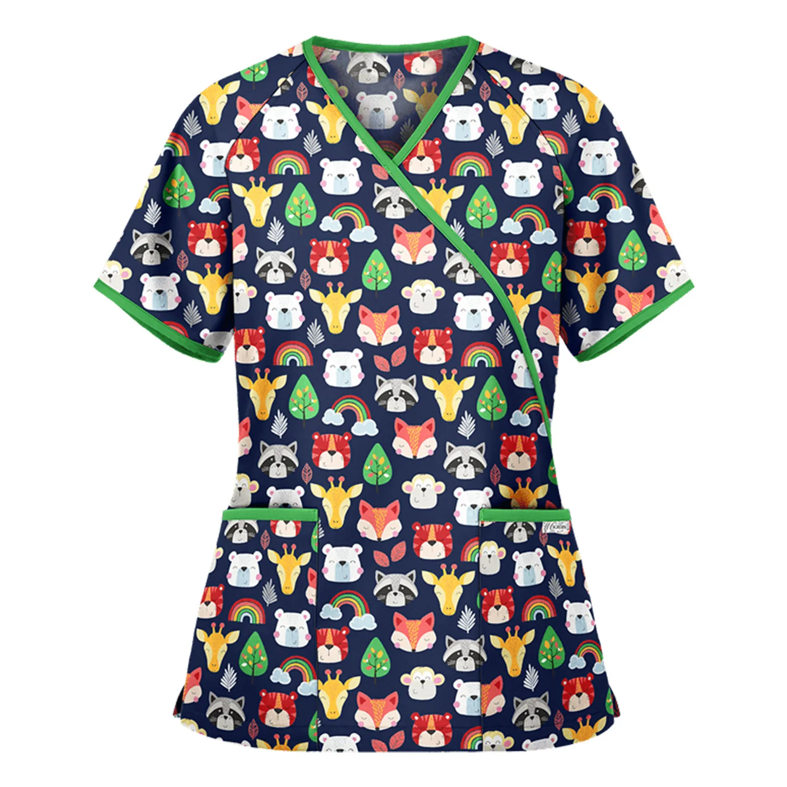 Женская футболка с коротким рукавом и v-образным вырезом рабочая Одежда, принт с героями мультфильмов Kawaii, принт с животными, блузка аксессуары для медсестер Медицинская Одежда