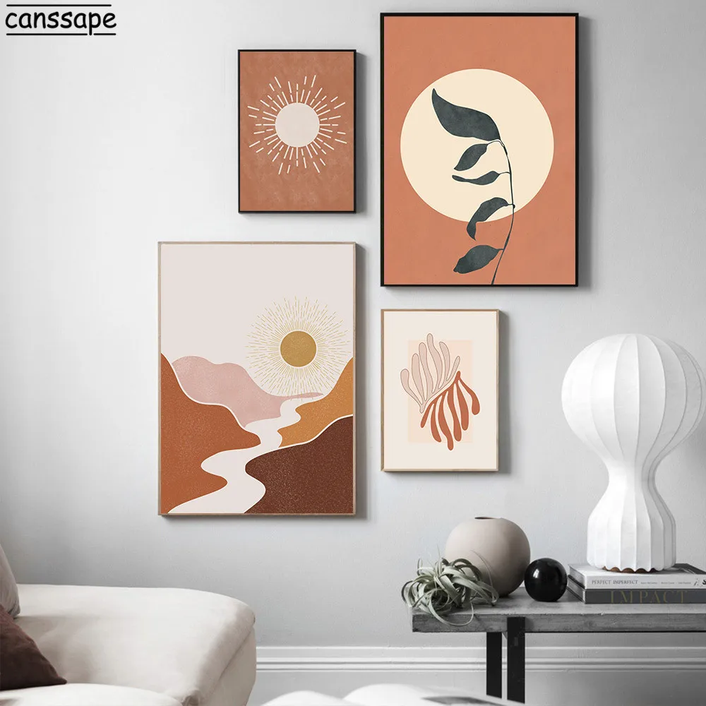 Постеры с цветами, абстрактная живопись, пейзаж восхода солнца, хол...