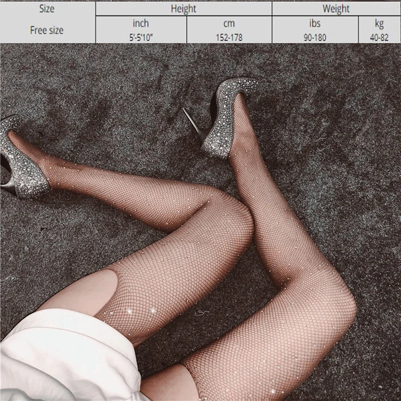 Новые пикантные Для женщин блеск ажурные колготки с открытой промежностью, сетчатый колготки блестящие стразы женские размера плюс колготки чулки