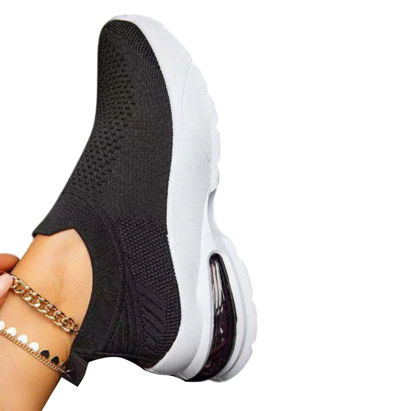 Кроссовки женские легкие без шнуровки, Спортивная Вулканизированная подошва, на воздушной подушке, дышащие прогулочные туфли на плоской подошве