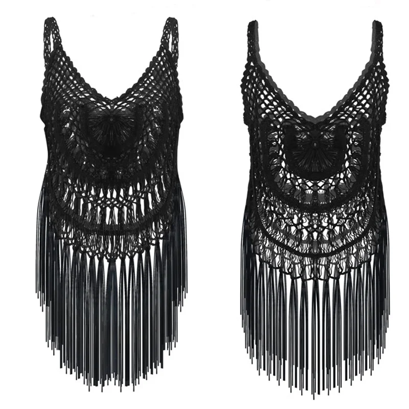 Сексуальные накидки, Женский вязаный крючком купальник с кисточками, открытый кафтан, пляжное платье, бикини, накидка, сарафан