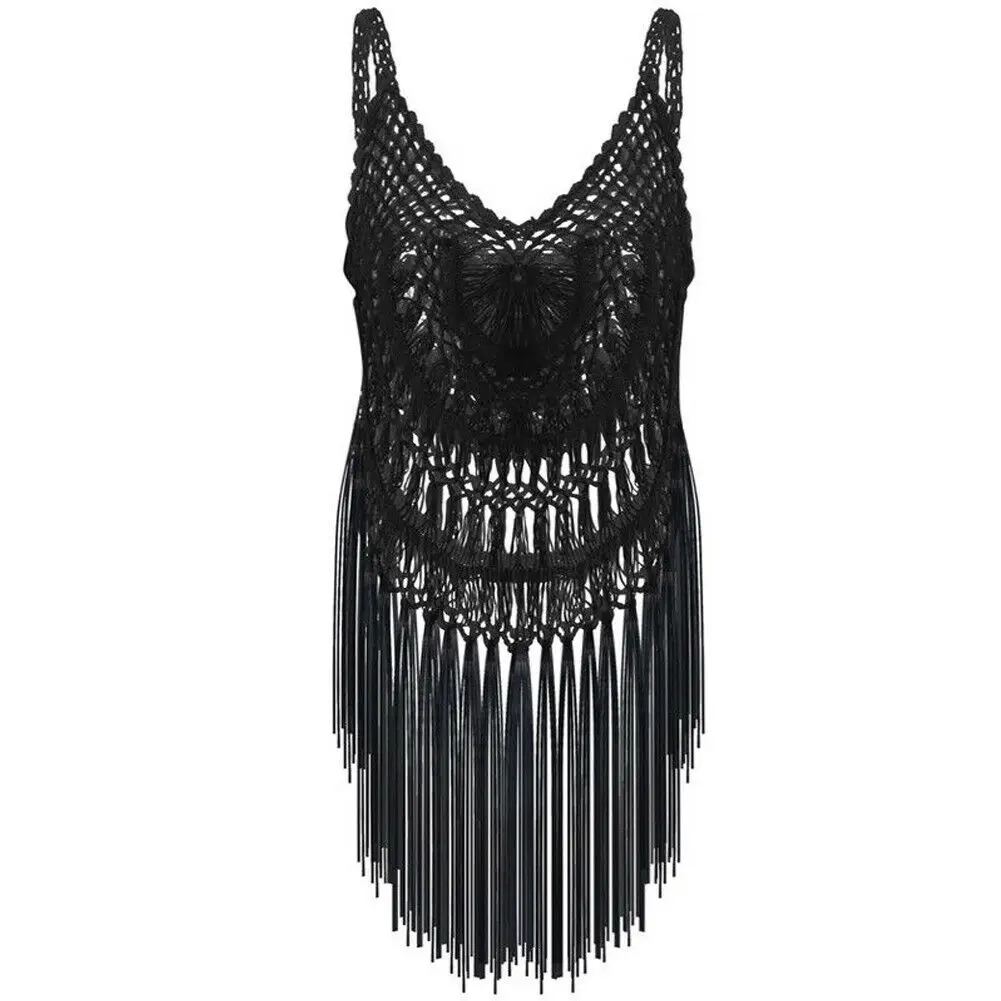 Женские вязаные крючком Купальники накидки дамские кисточки пляжное...