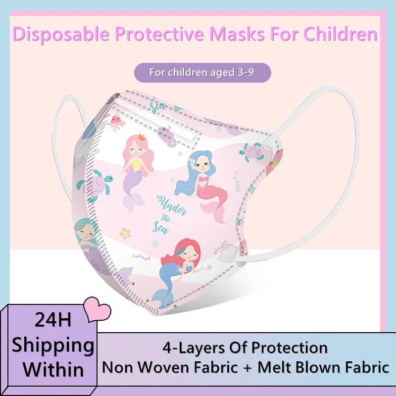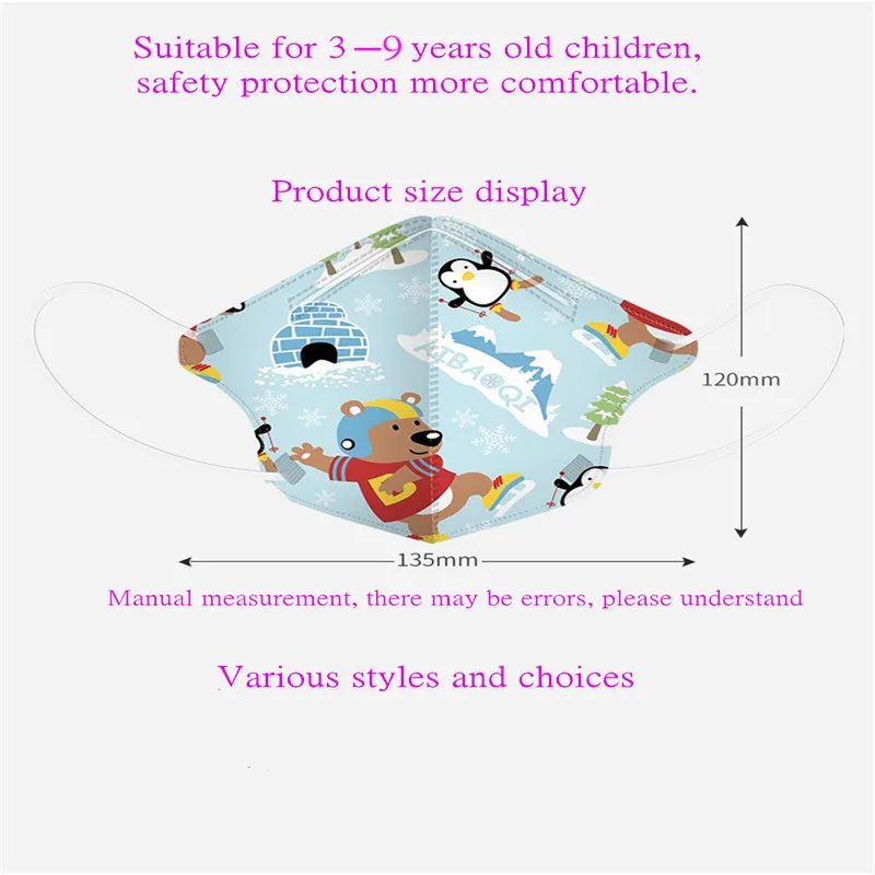 100/50/шт/партия, одноразовая маска для детей с героями мультфильмов, 4/3 слоя, детский фильтр, гигиеническая плотная детская маска для лица, 3D стерео маскаUSD 3,33/Шт/Лот 1