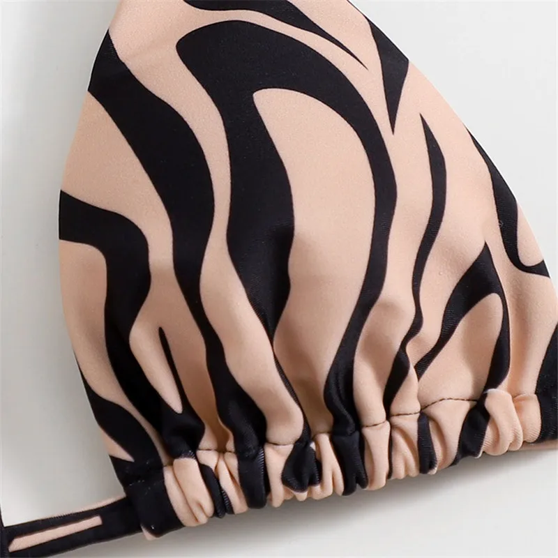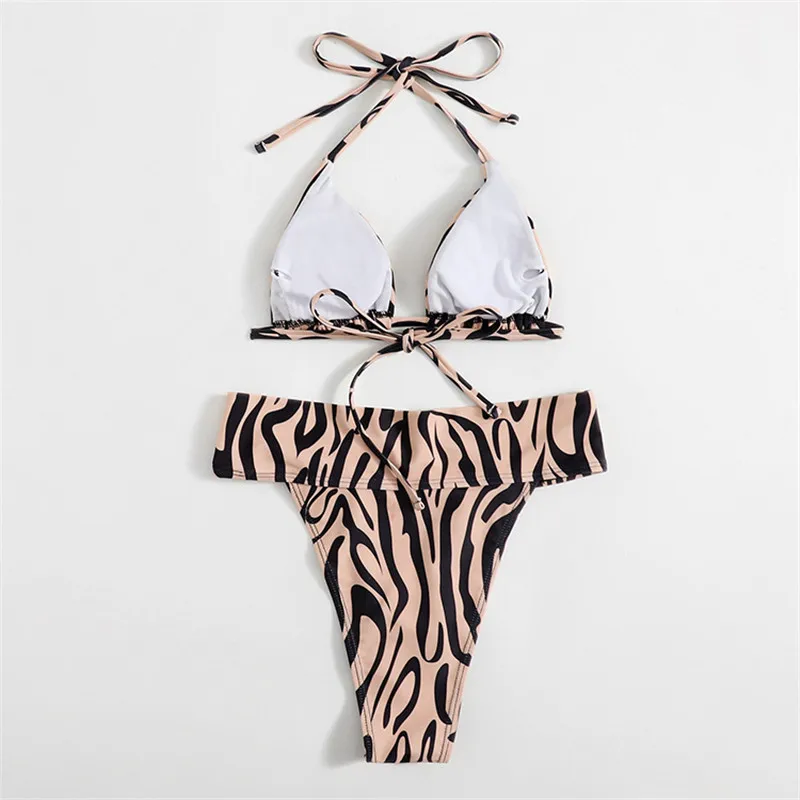 Купальник женский, треугольный, с полосками и высоким вырезом