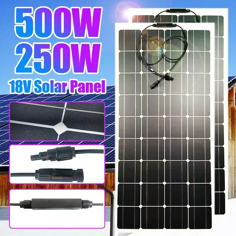 Солнечная панель s 500 Вт 250 Вт 18 в, Гибкая солнечная панель, батарея, внешний аккумулятор, Солнечная зарядная система, солнечная панель в комплекте для дома солнечная батарея солнечные панели