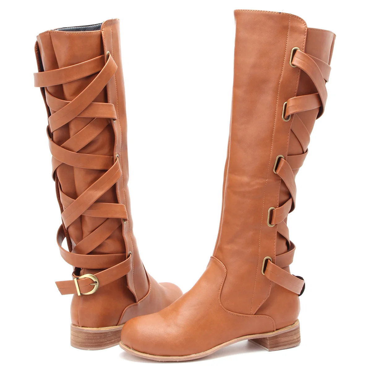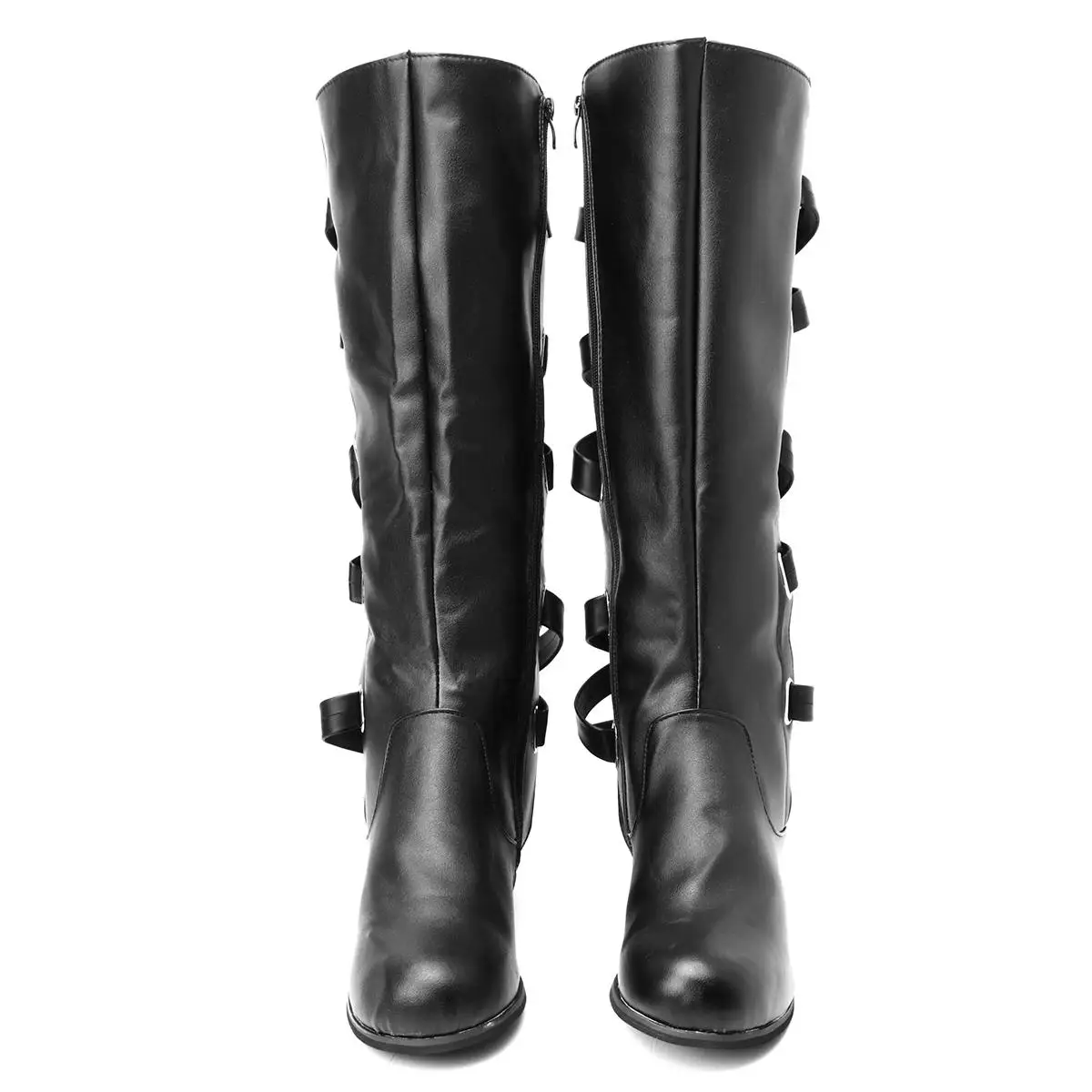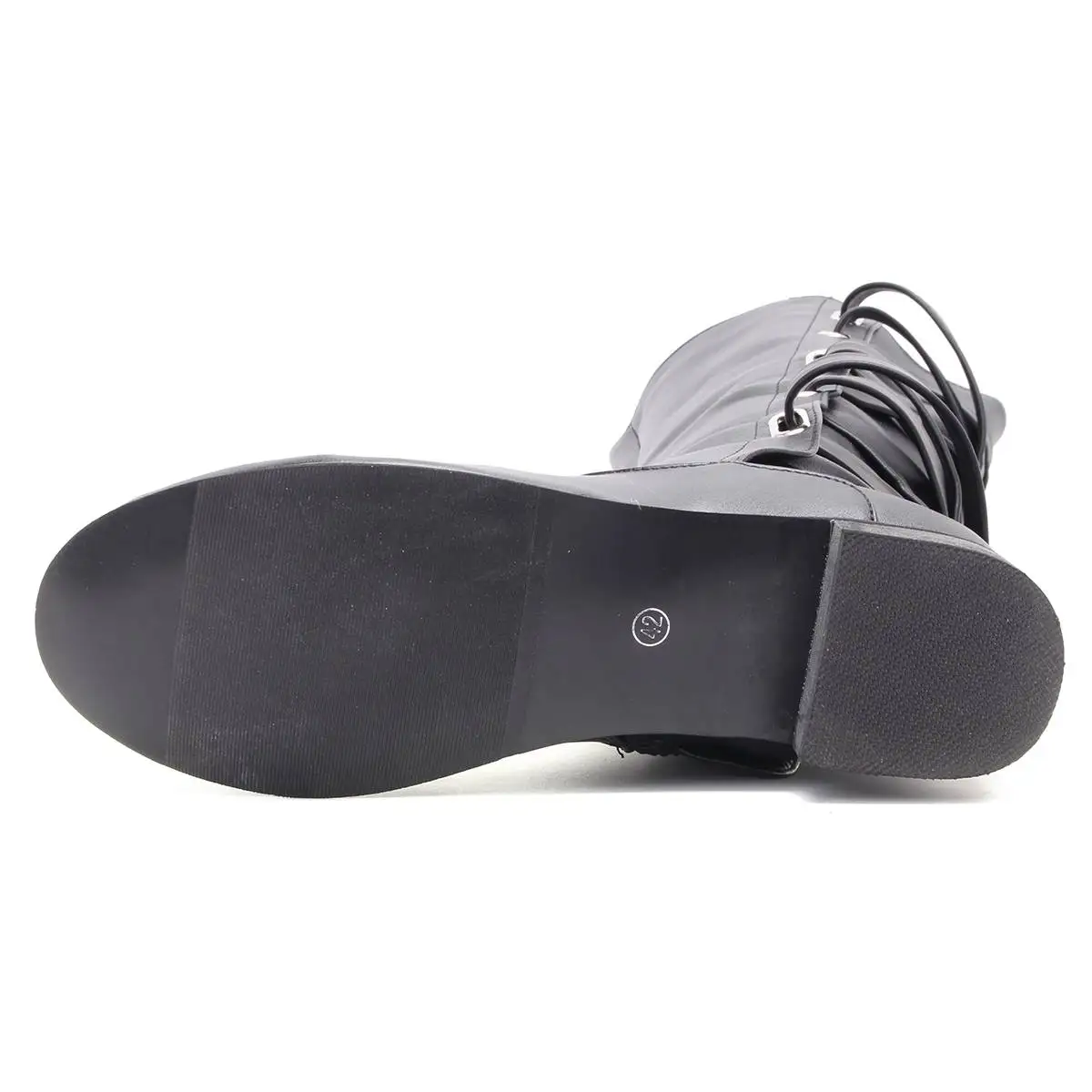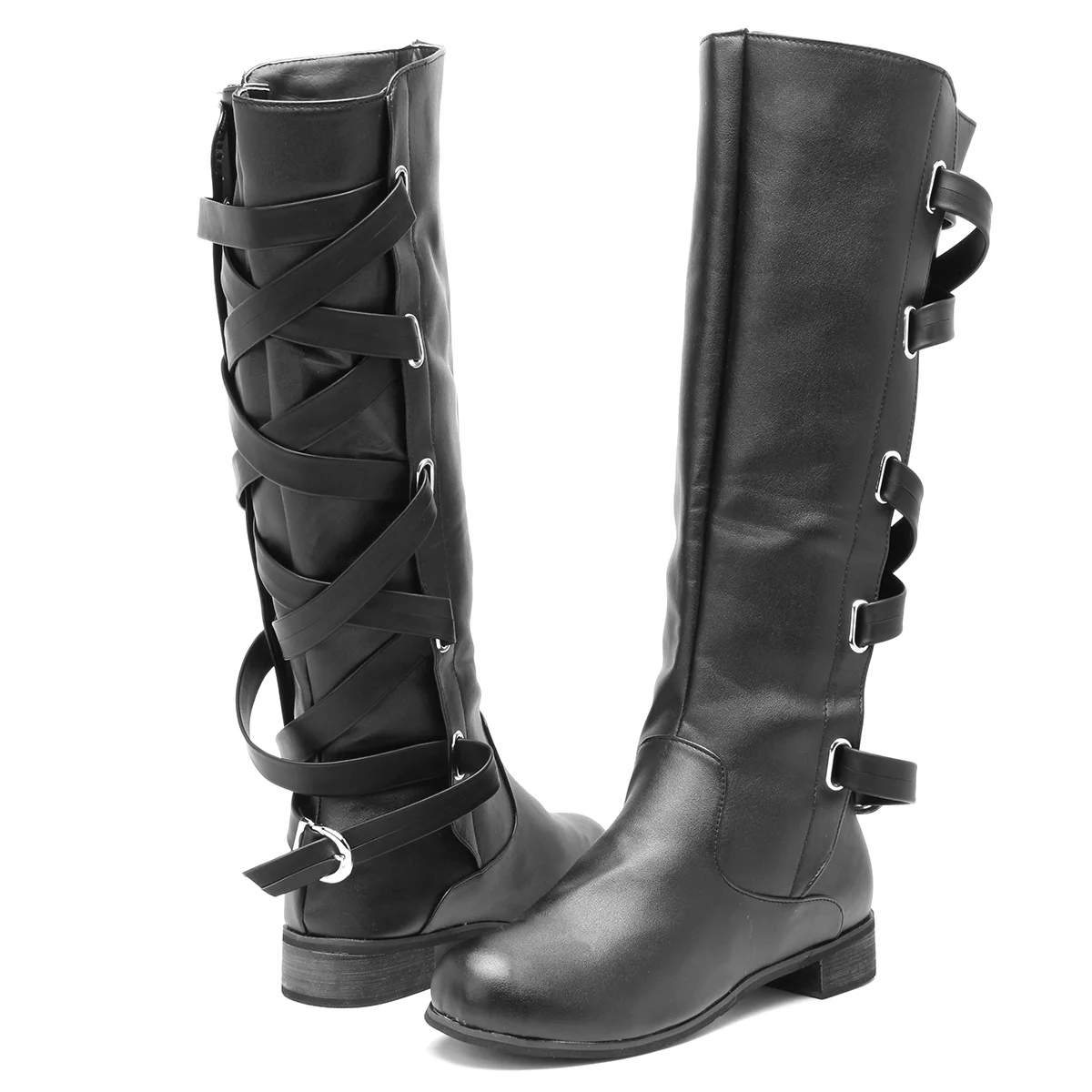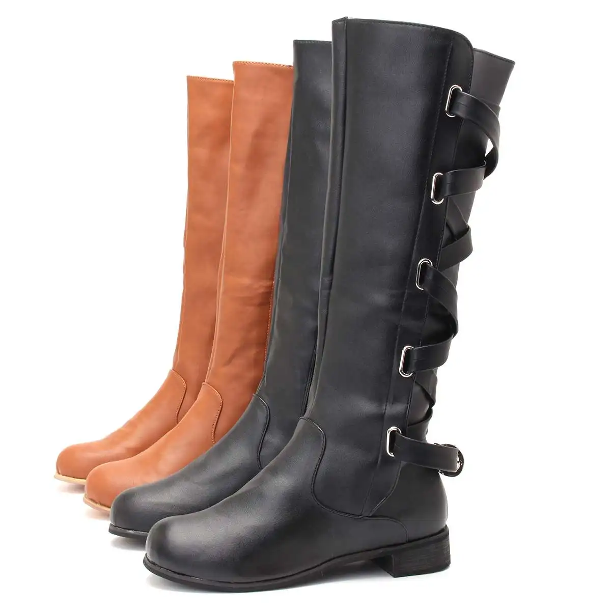Nisженские ботинки с высоким голенищем модные ботинки для верховой езды с пряжкой сапоги до колена на низком каблуке, высокие сапоги до колена из натуральной кожи без застежек на высокие сапоги на шнуровке; Зимние ботинки; Botas Mujer