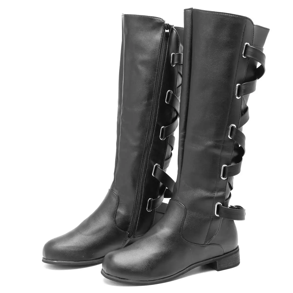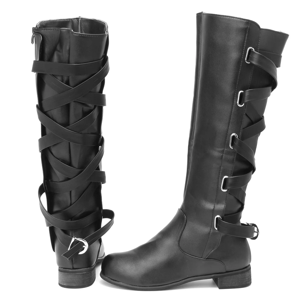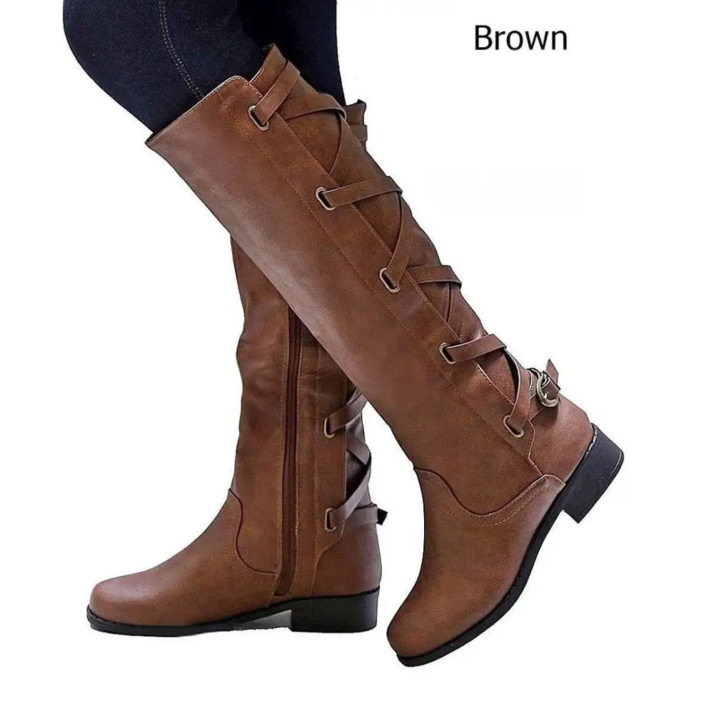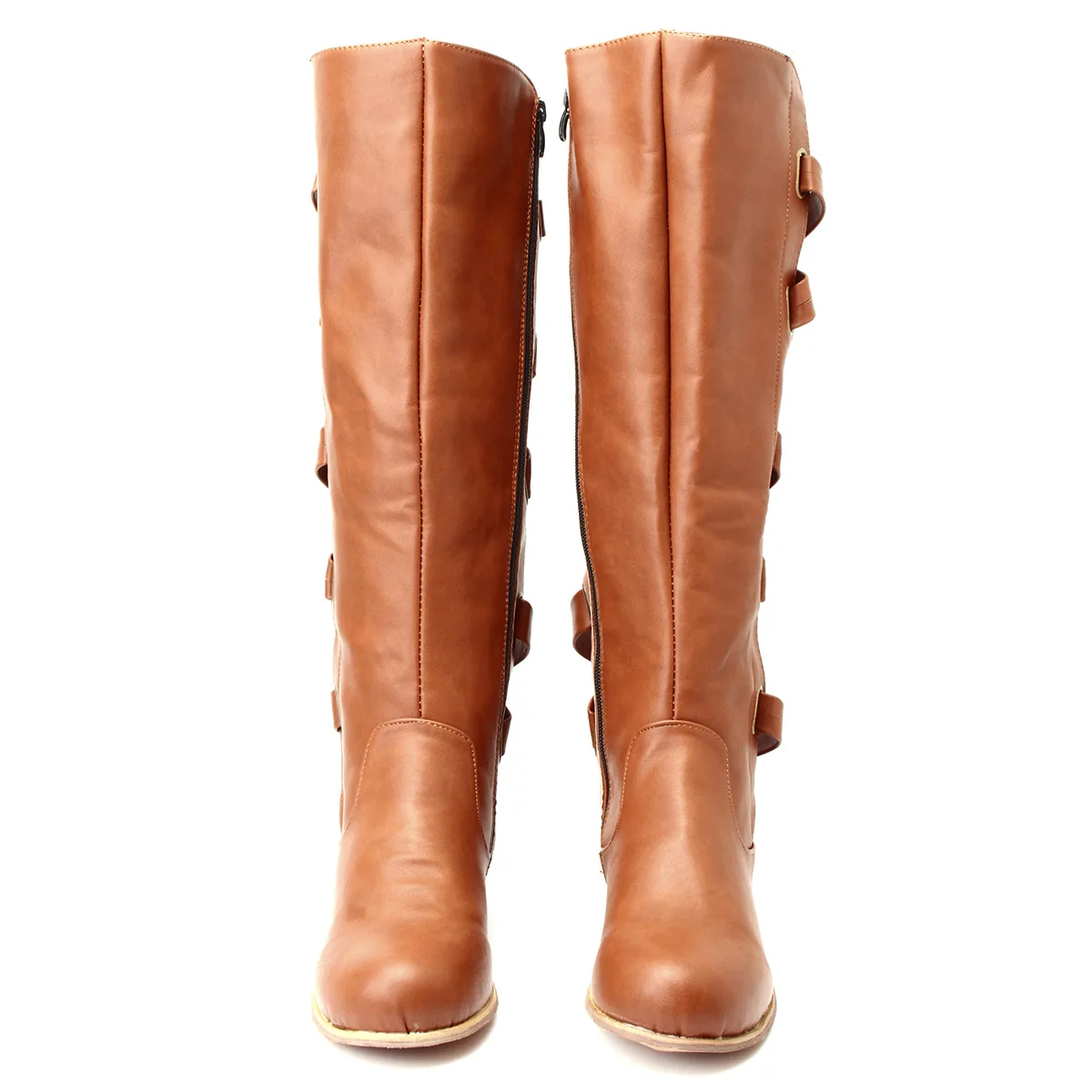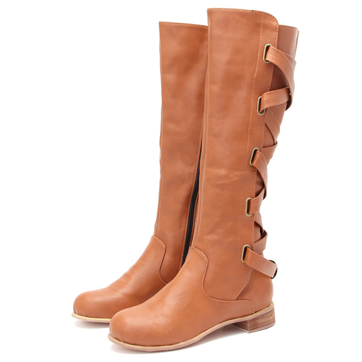 Nisженские ботинки с высоким голенищем модные ботинки для верховой езды с пряжкой сапоги до колена на низком каблуке, высокие сапоги до колена из натуральной кожи без застежек на высокие сапоги на шнуровке; Зимние ботинки; Botas Mujer