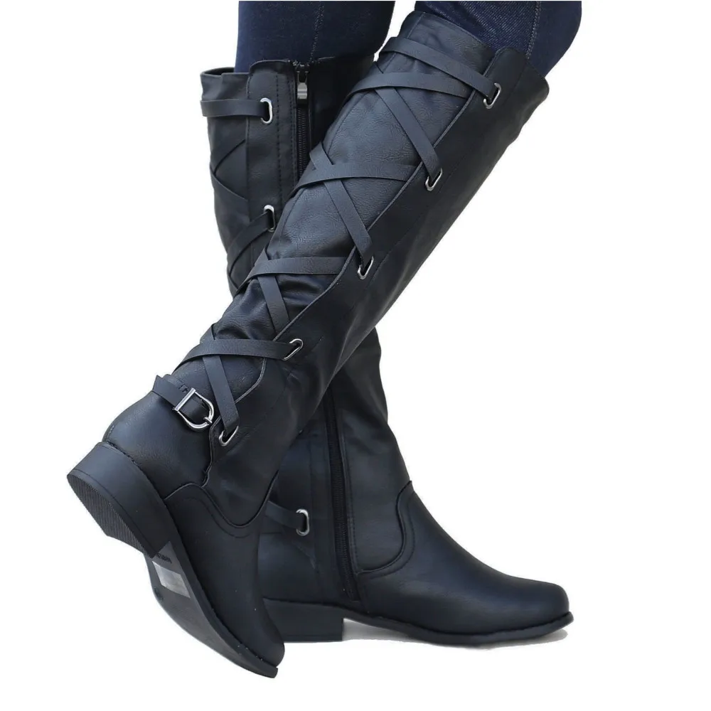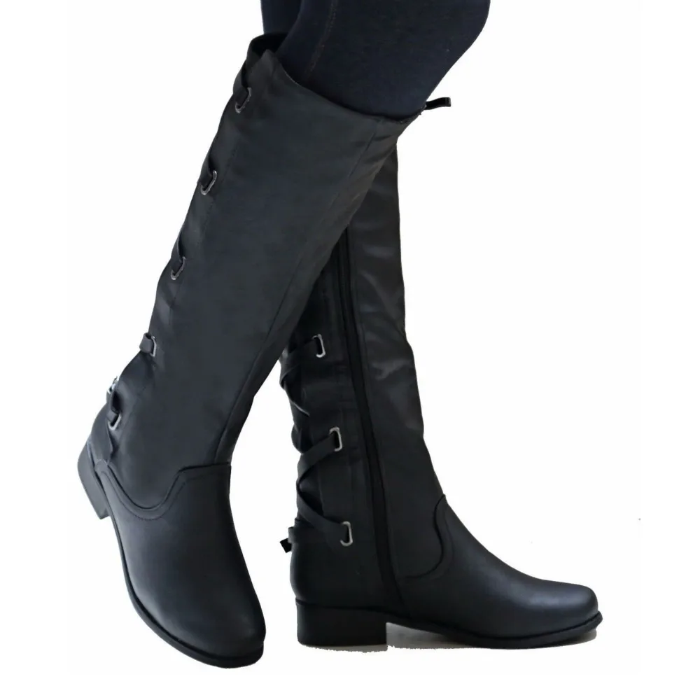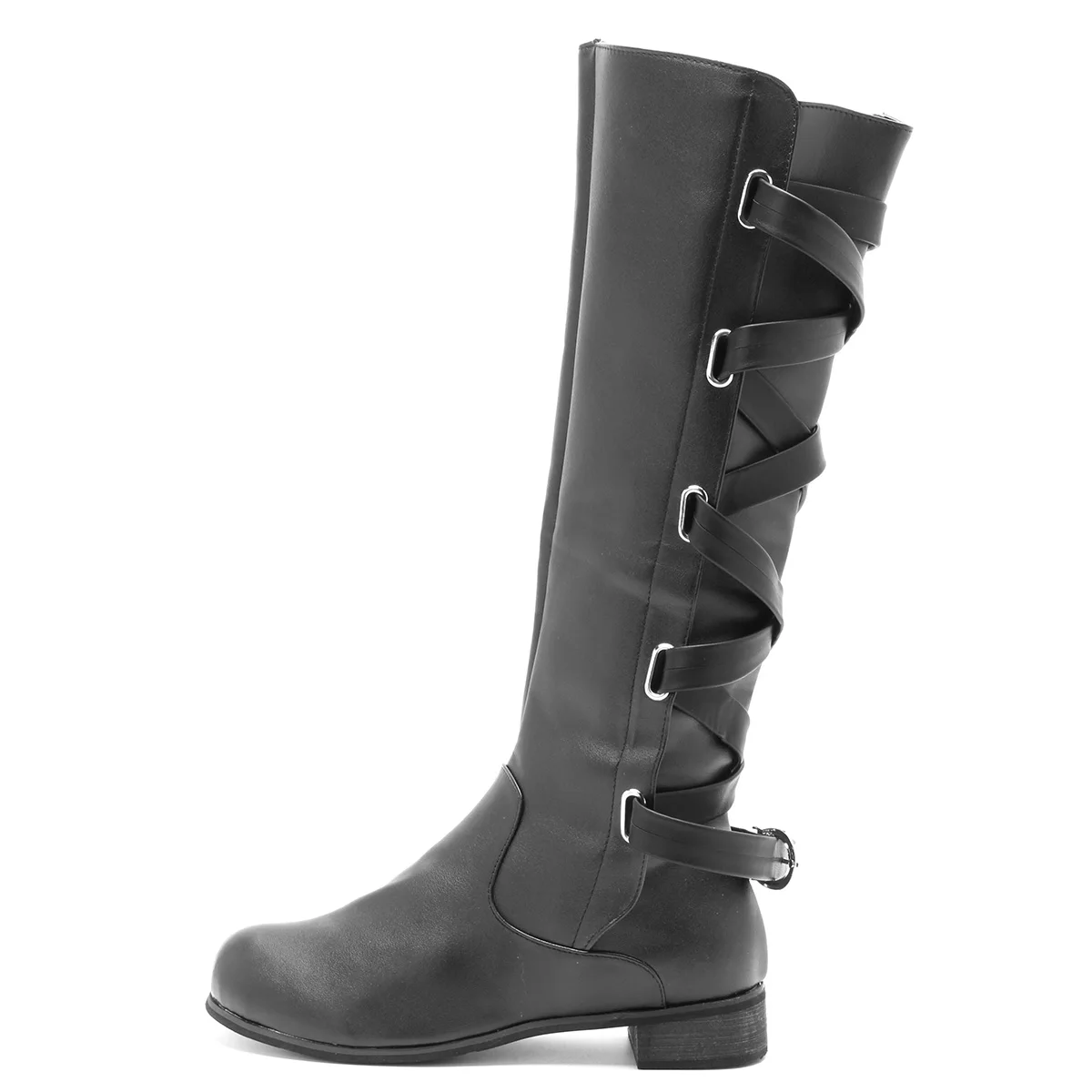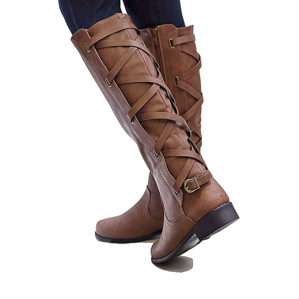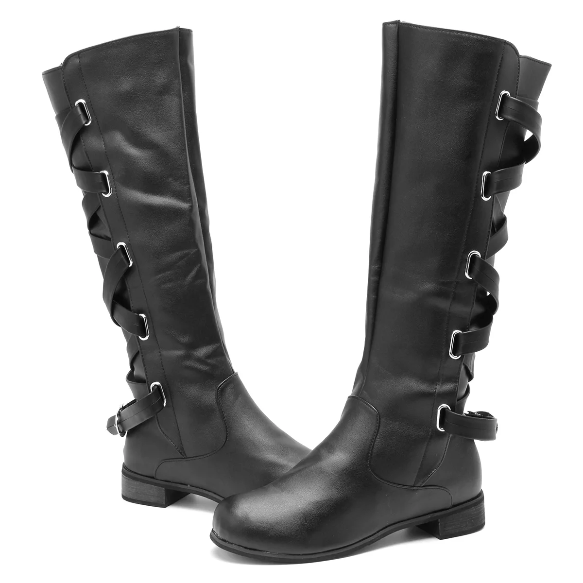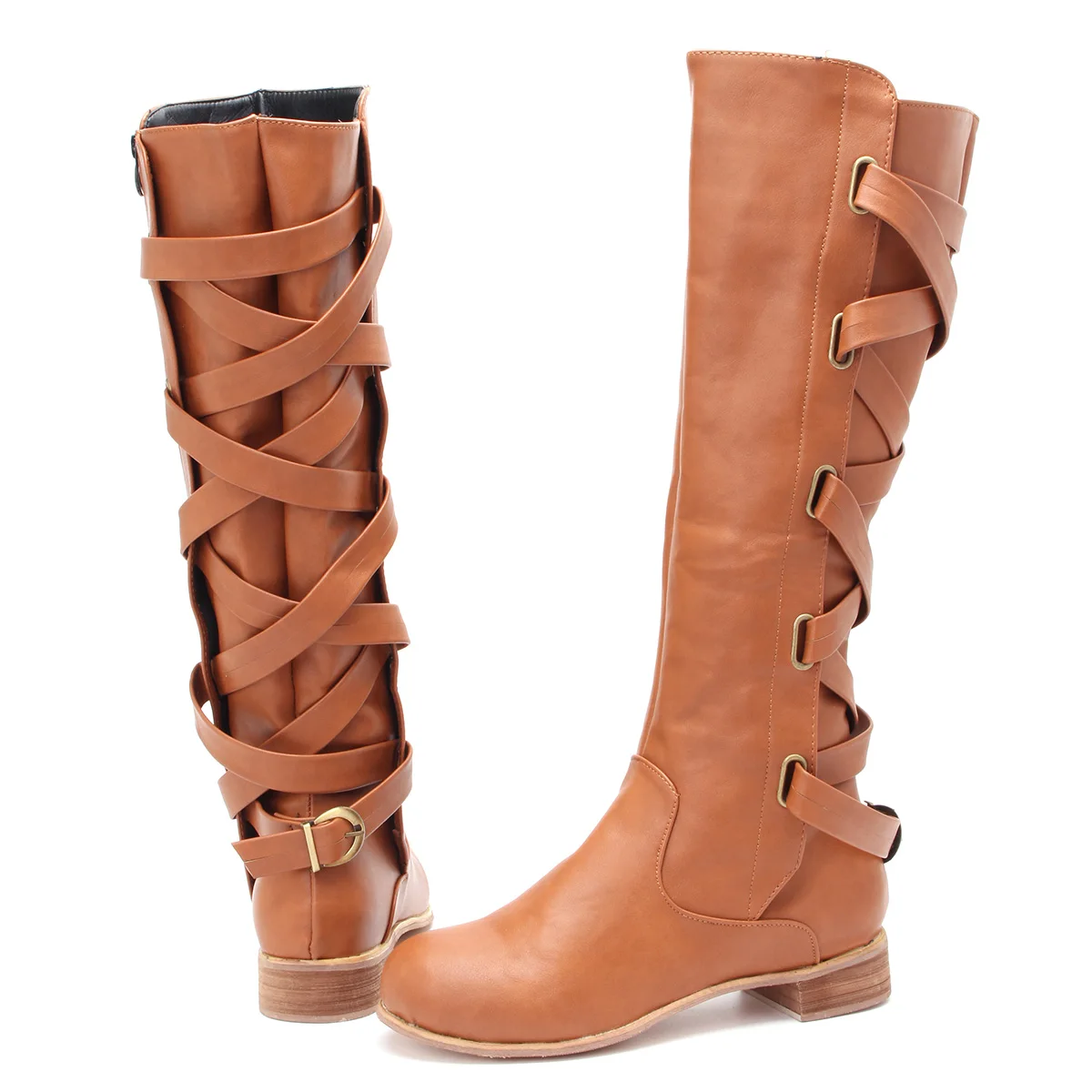 Nisженские ботинки с высоким голенищем модные ботинки для верховой езды с пряжкой сапоги до колена на низком каблуке, высокие сапоги до колена из натуральной кожи без застежек на высокие сапоги на шнуровке; Зимние ботинки; Botas Mujer