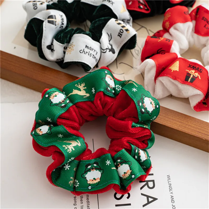 Милые зимние Бархатные рождественские резинки для волос для женщин,...